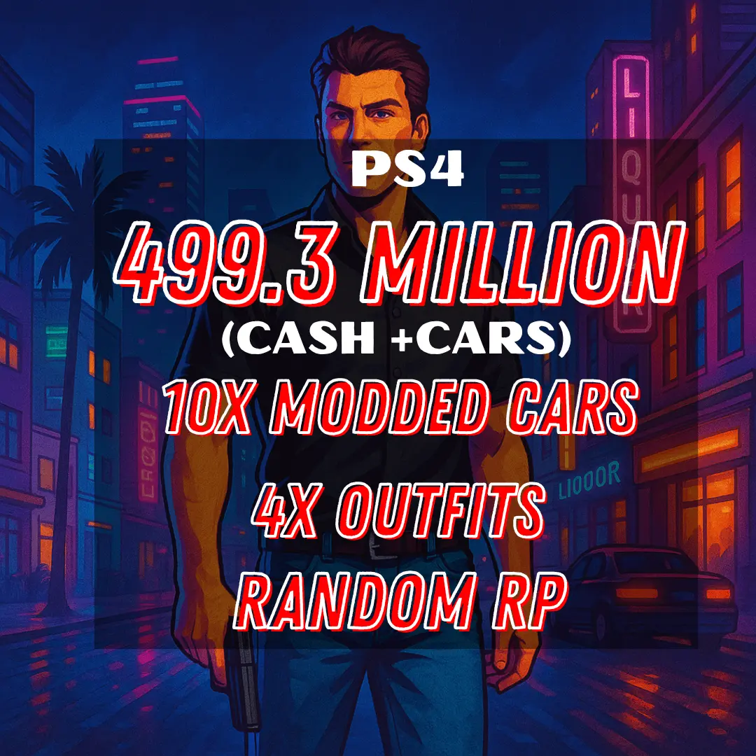 🐉 [PS4] 💶 499.3 Million Cash + 🚔 Deluxo 🧭 RP Random 🚗 10 Modded Cars 👚 4 Outfits 💫 GTA Modded Account
