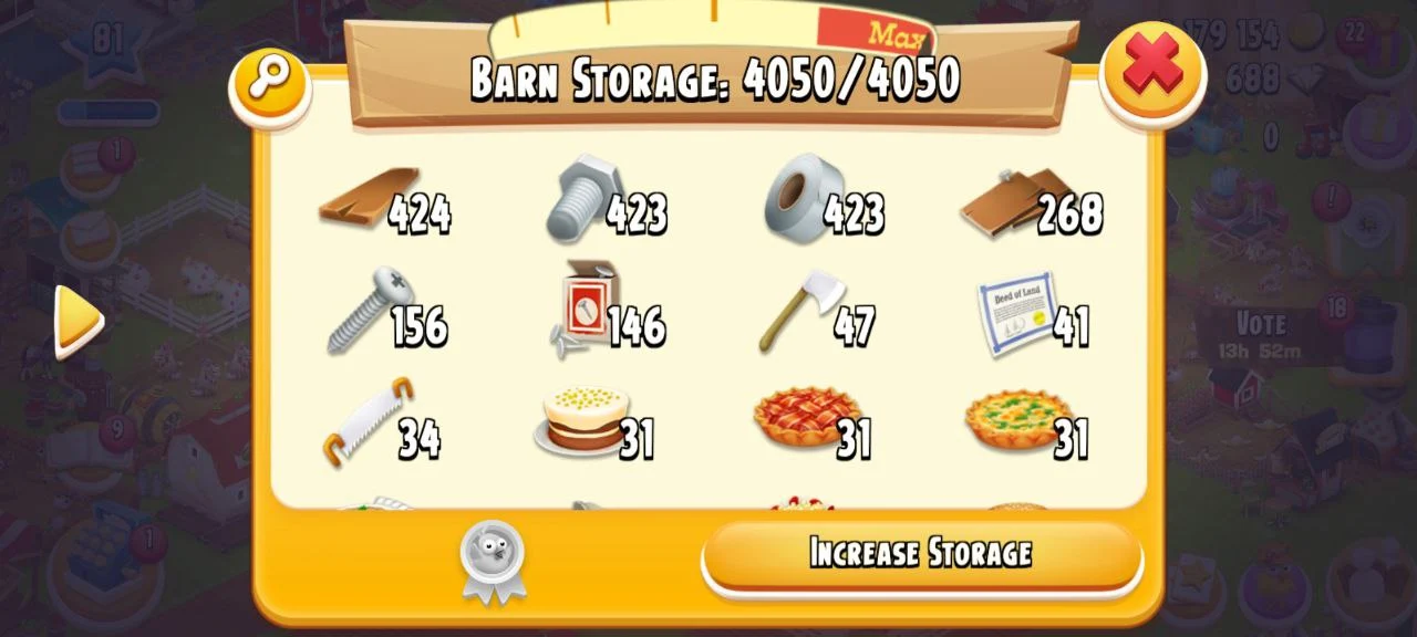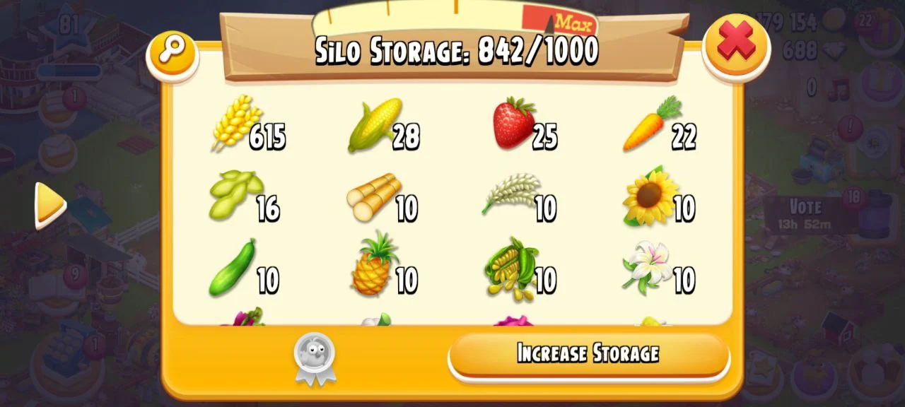 ✨️ CHEAPEST LEVEL 81 HAY DAY FARM 🌾 2179154 COINS🪙 4050/4050 BARN STORAGE💪 842/1000 SILO STORAGE🎯 688 GEMS💎 SUPPORTS BOTH iOS&Android✅️ INSTANT DELIVERY 🚚