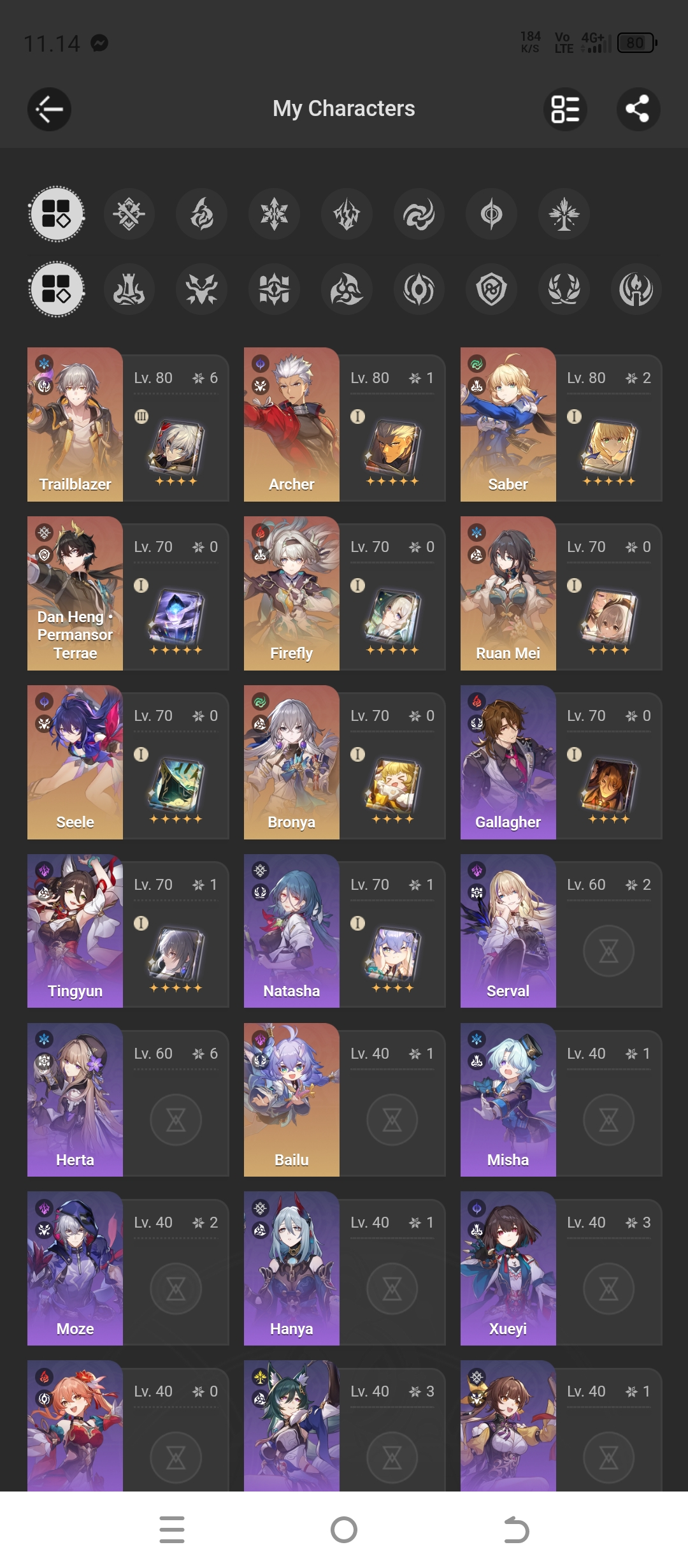 🔥 ASIA Server | TL 66 | 31 Characters | 9 Char *5 | (Saber, Archer, Dan Heng) | All Items Good | SAFE ACC 🔥