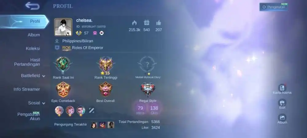 #EL 3904🔥MOBILE LEGEND🔥3 EMBLEM MAX🍀3 SABER🍀7 EPIC🍀3 BLAZING🍀RANK:EPIC🍀HERO 79🍀SKIN 138(SAFE ACCOUNT)