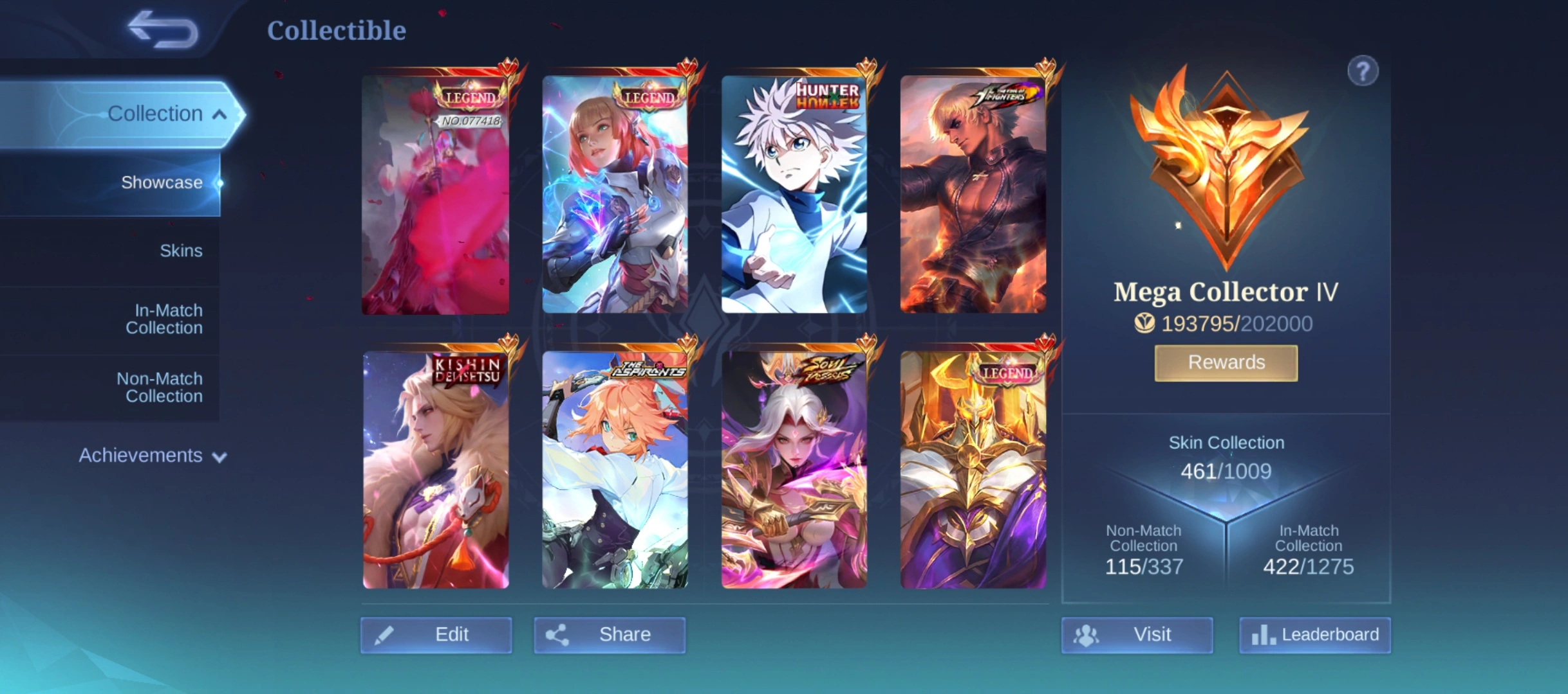 N246|LV 122|MEGA COLLECTOR IV|461 SKIN|5 LEGEND (ALPHA,GUINEVER,JOHNSON,ETC)LANCE KINSHIN|IRITHEL DUCATI|HARITH KILLUA|HANABI VESSEL|2 PRIME|3 ASPIRANTS|2 KOF