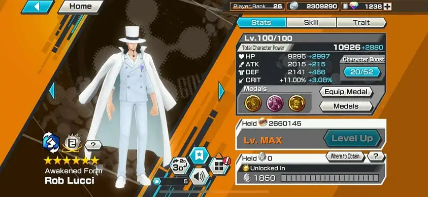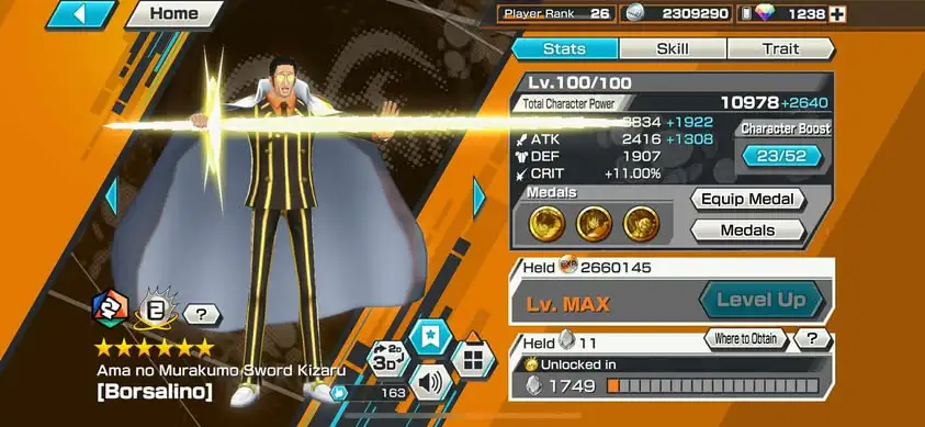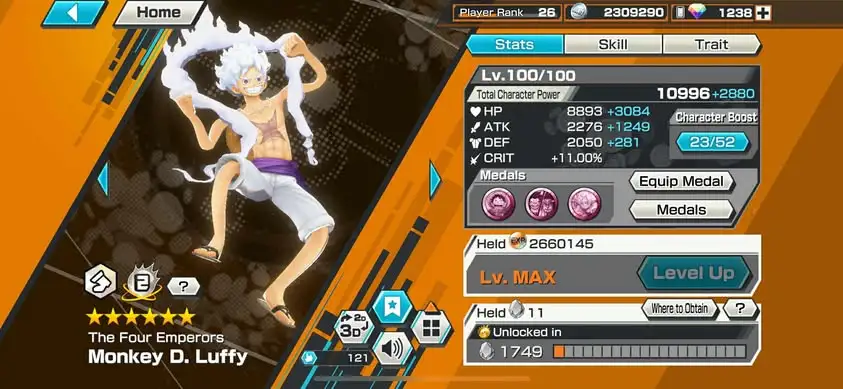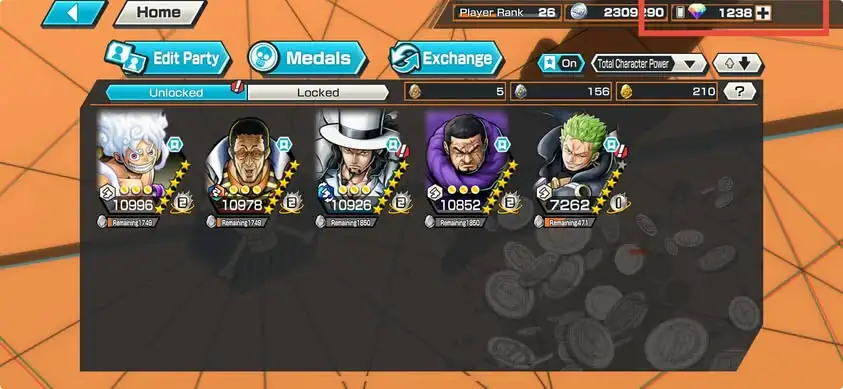 [3410][ IOS ONLY ] 3 EX META MAX / Kizaru + Lucci + Luffy Light , 1238 GEMS IOS / Support 154% , Good Medal