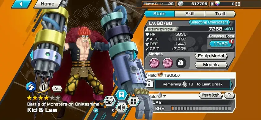 [4189][IOS+ANDROID] 7 EX / Garp + Blackbeard + Kuzan + Zephyr + Luffy Blue + Yamato + Kid Law , Support 137% , Good Medal