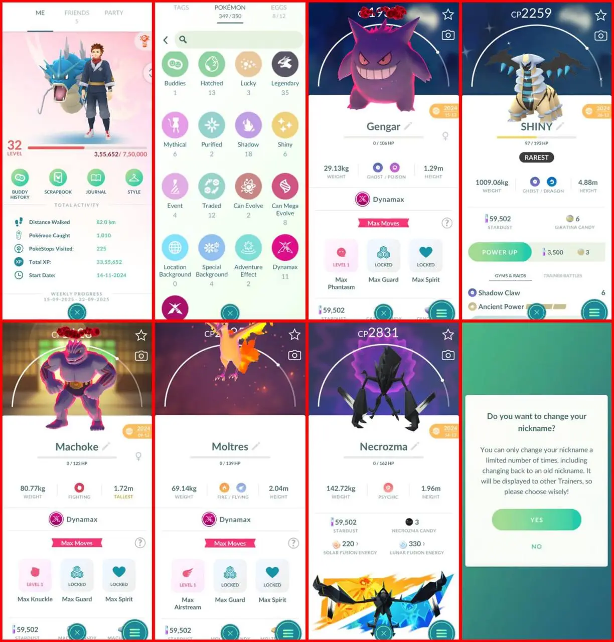 LEVEL 32(VALOR)🔥349/350 Pokemon🔥35 Legendary🔥11 Dynamax🔥D-Max Moltres🔥D-Max Gengar🔥Name Change Available🔥Instant Delivery