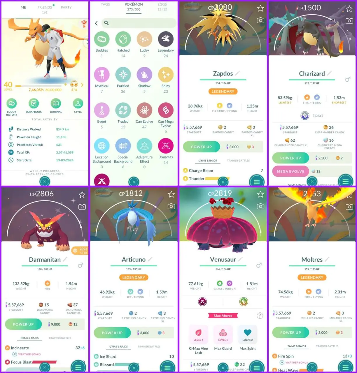 LEVEL 40(INSTINCT)⭐️273/300 Pokemon⭐️24 Legendary⭐️23 Shiny⭐️Shiny Charizard⭐️G-Max Venusaur⭐️Name Change Available⭐️Instant Delivery🚚