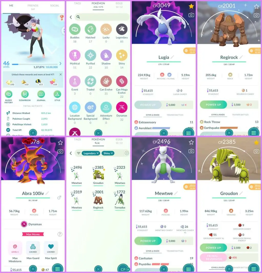 LEVEL 46(MYSTIC)🔥436/475 Pokemon🔥85 Legendary🔥14 Shiny🔥Legendary Lugia🔥3 Shiny Mewtwo🔥Instant Delivery
