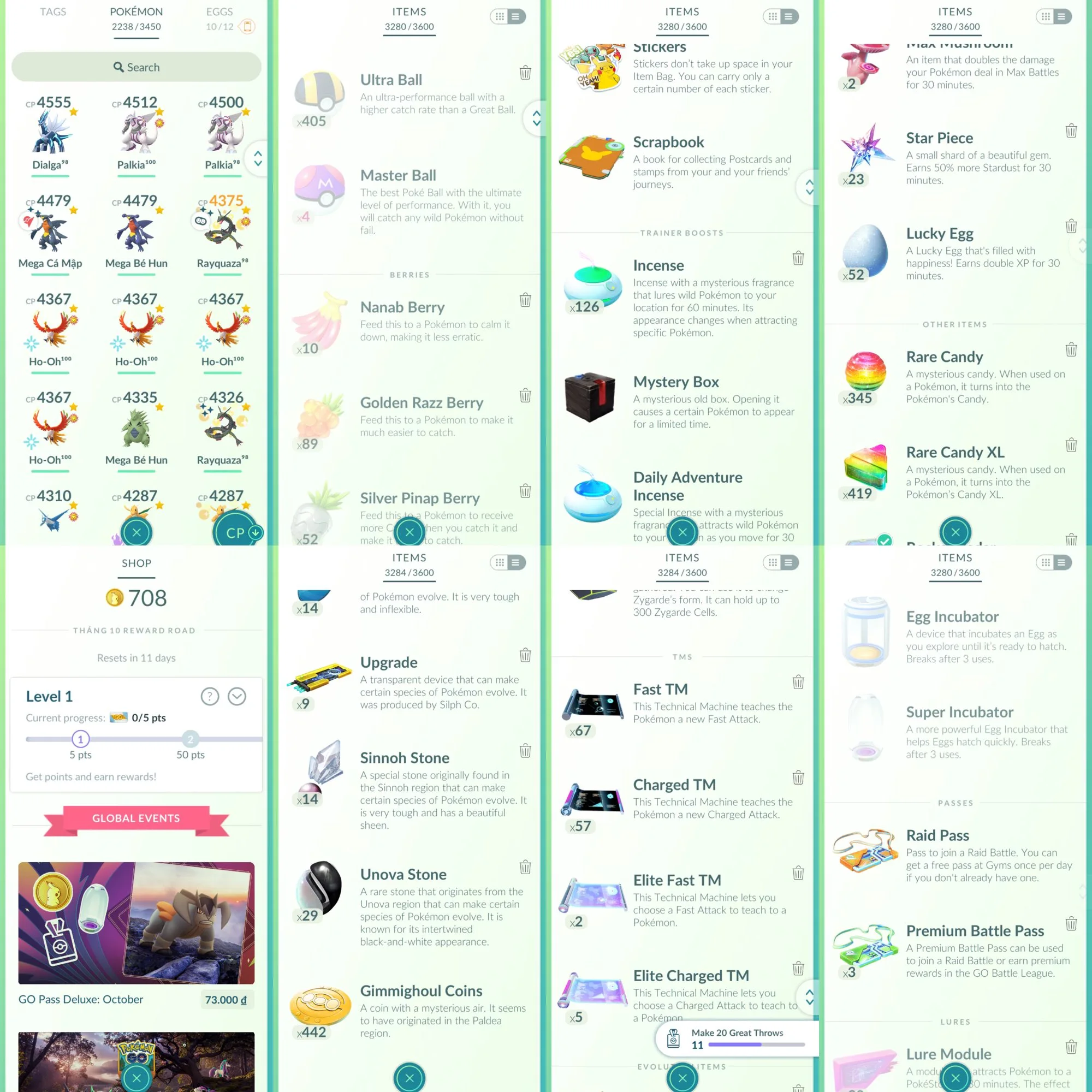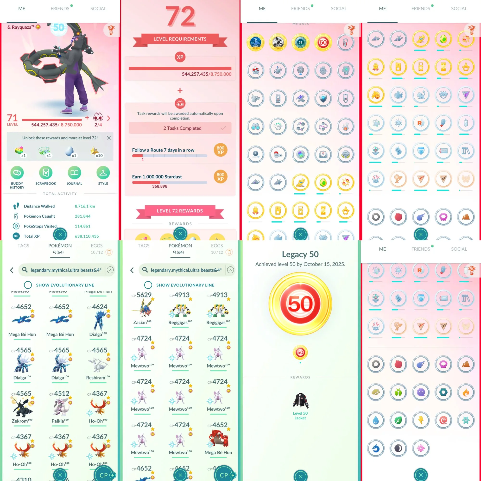 Level 71+;65 legend iv100-41 Medal plantium-358m+ Stardust-682 legend-1286 shiny-298 Shundo-401 Hundo-638m+ XP-452 3move PVP