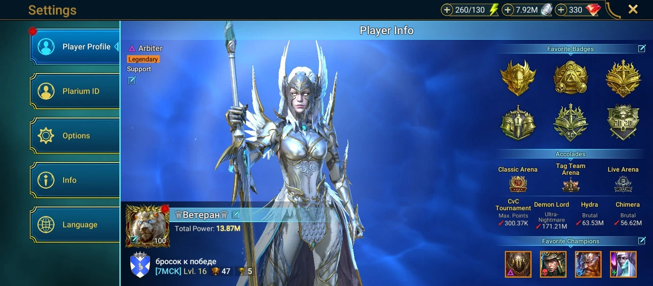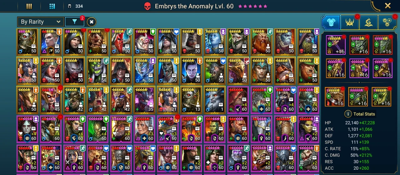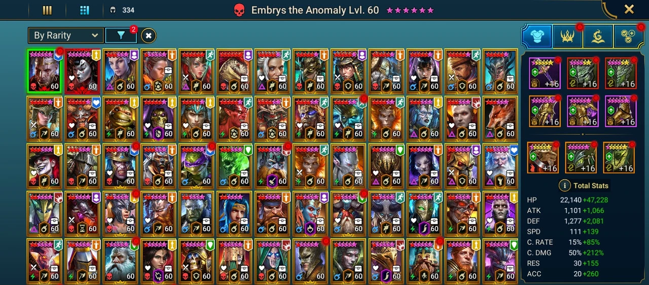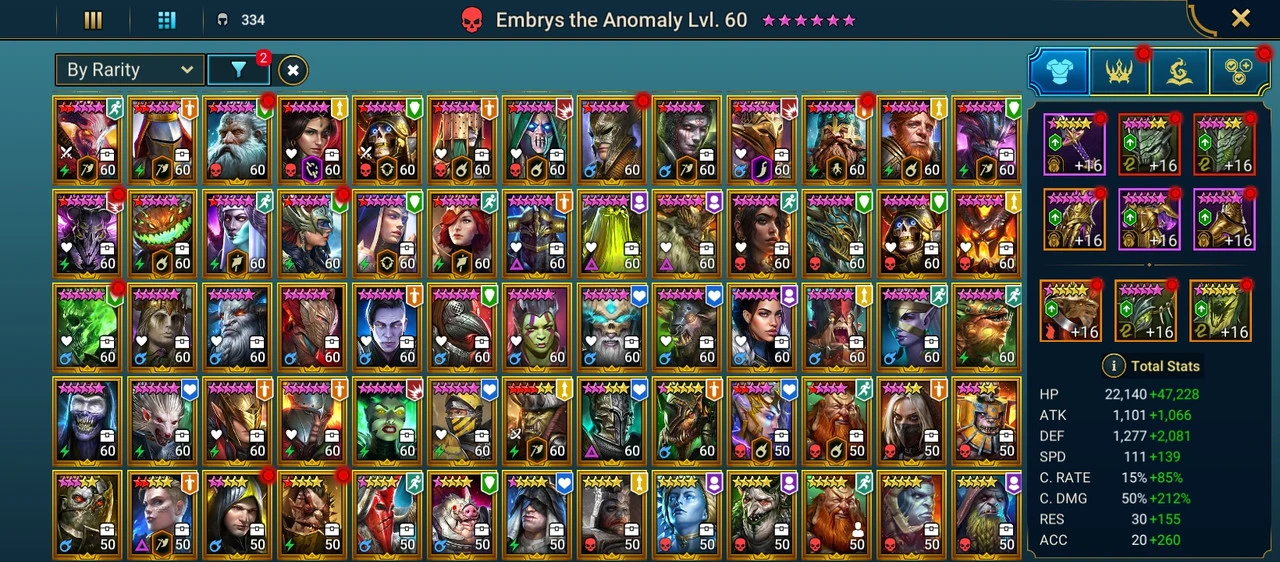 RK152 | 100 lvl account / 13,87M Power / 137 legendary , 2 mythic , 157 epic champions / 7,62M Silver / 330 Gems / 130 Energy