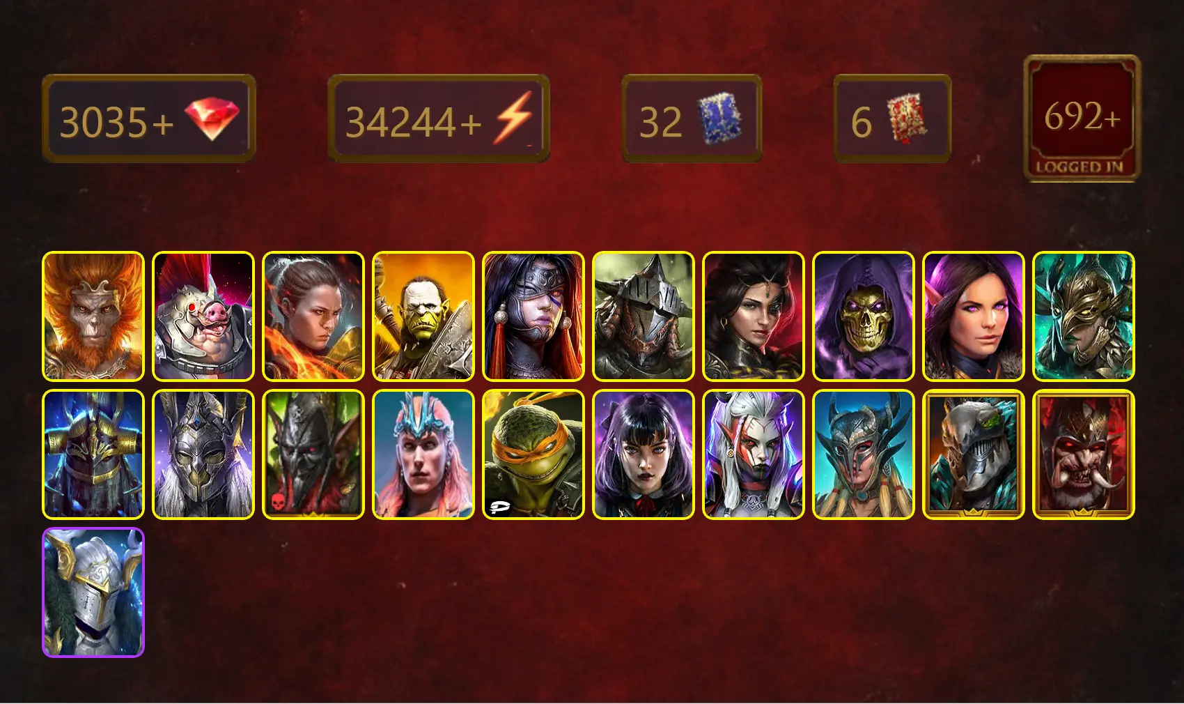 [STARTER]Kyoku+Zavia+Wukong+Wythir+Norog+Ronda+Artak+Rathalos+Adelyn+Skeletor+Cleopterix+Leminisi the Gold-Wing+Yakarl+41Epics