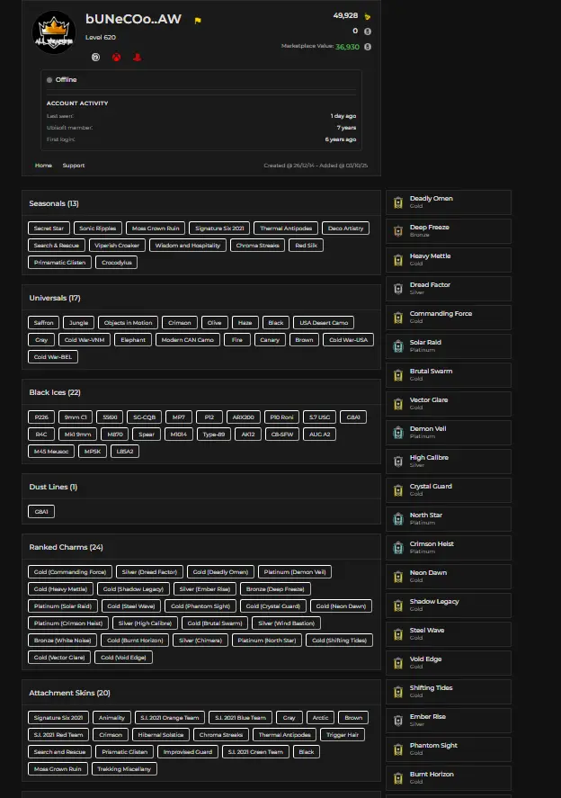 🎮 FULL CROSS-PLATFORM | 600+ Skins | LEVEL 620 | 50K RENOWN | 22 BLACK ICE | 22 LEGENDARY | 146 EPIC | ULTIMATE COLLECTOR ACCOUNT