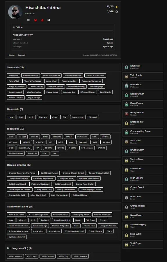 🎮 FULL CROSS-PLATFORM | LEVEL 330 | 91K RENOWN | 30 BLACK ICE | 33 LEGENDARY | 126 EPIC | ULTIMATE COLLECTOR'S ACCOUNT