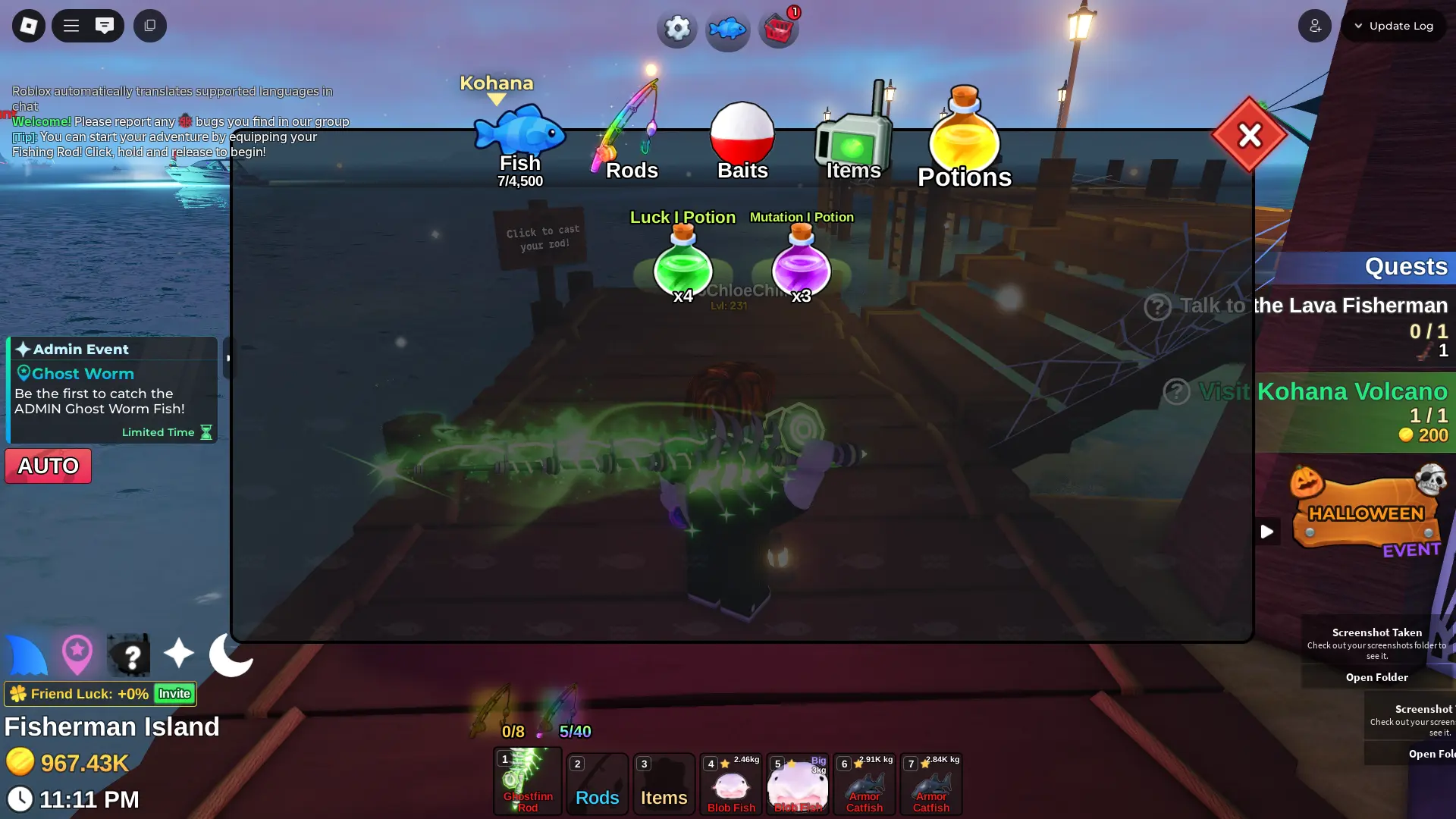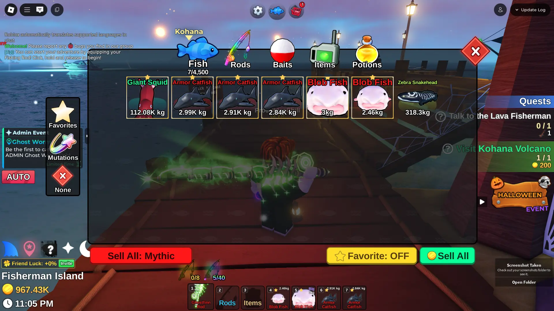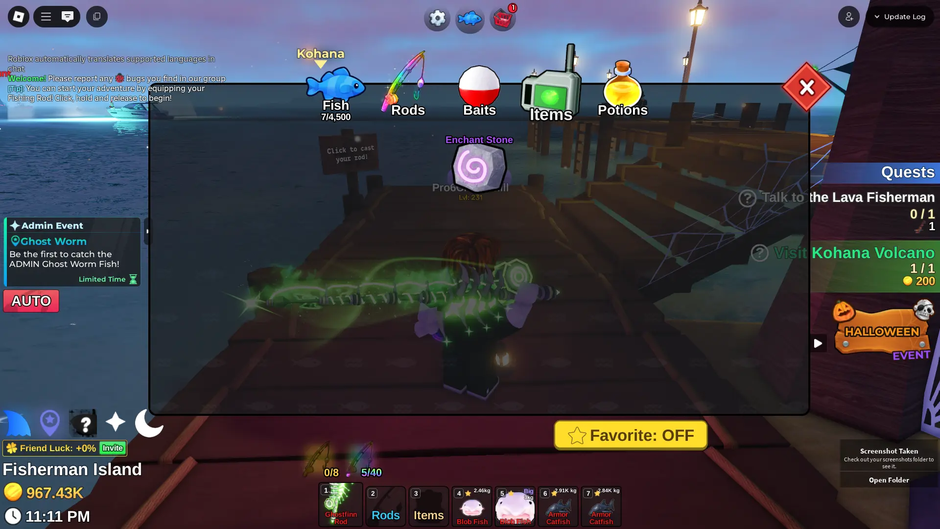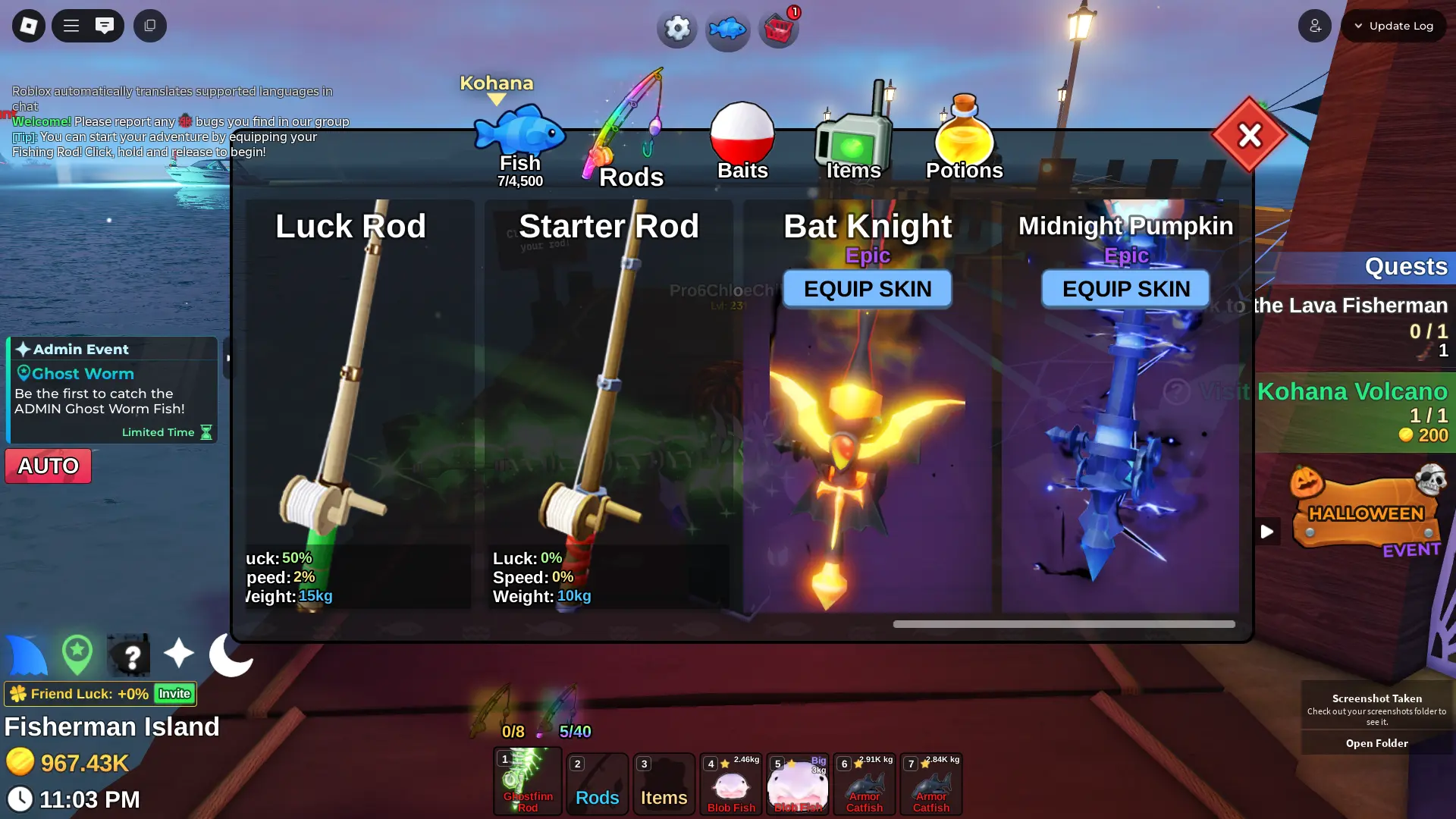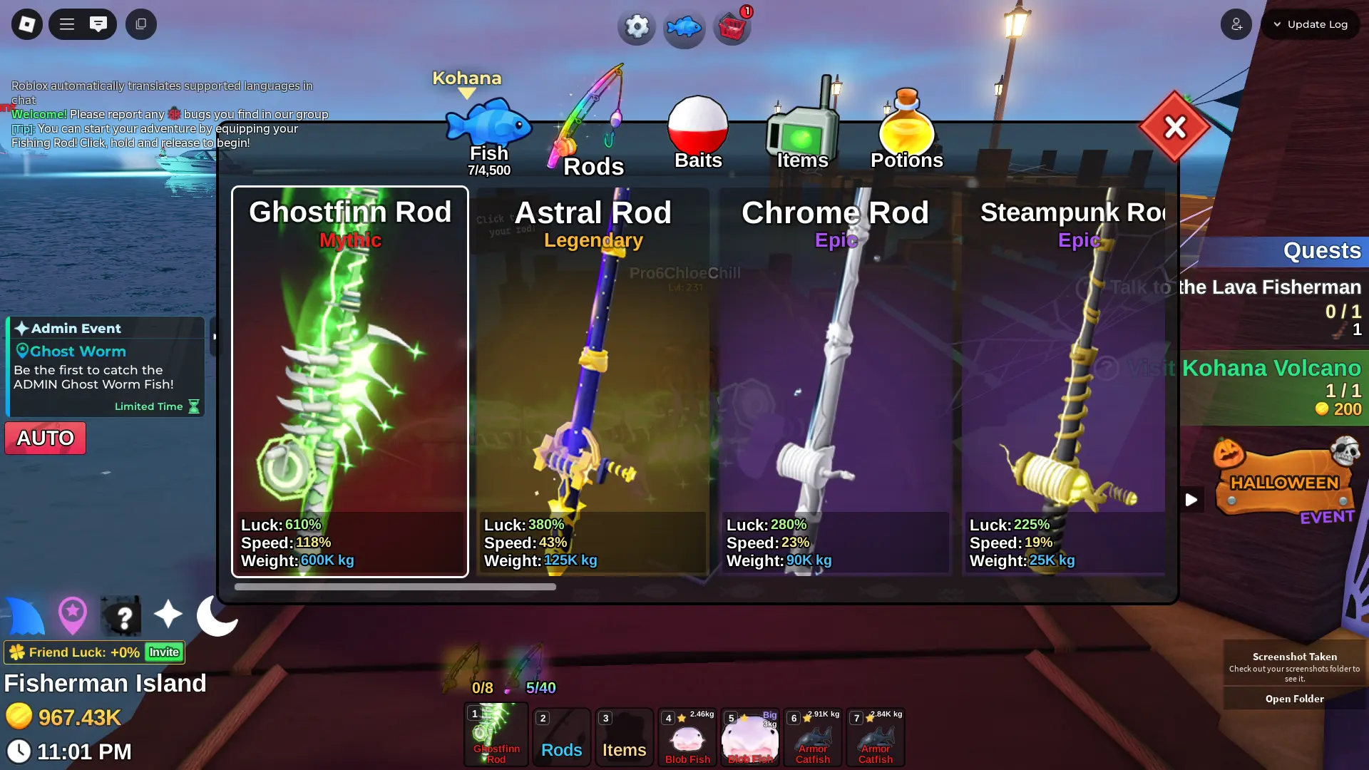 Fish it Account ❄️ Ghostfinn Rod ❄️ Dark Matter Bait ❄️ secret + mythic Fish ❄️ 1/800k catch ❄️ 500k Coin ❄️ Skin Rods ❄️ Level 218