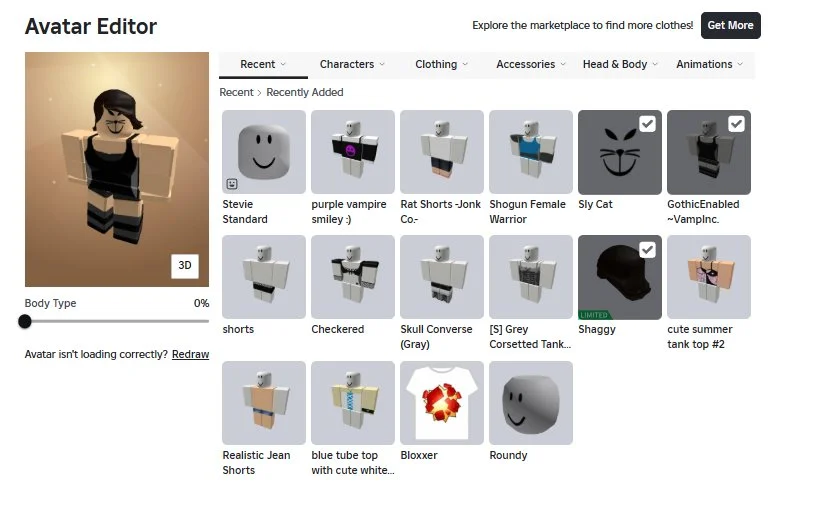 RBL2377 //Account 2010 | Sly Cat Face | Limited Shaggy | 3 Robux | 4 Place Visits | Rare Clothing(K)