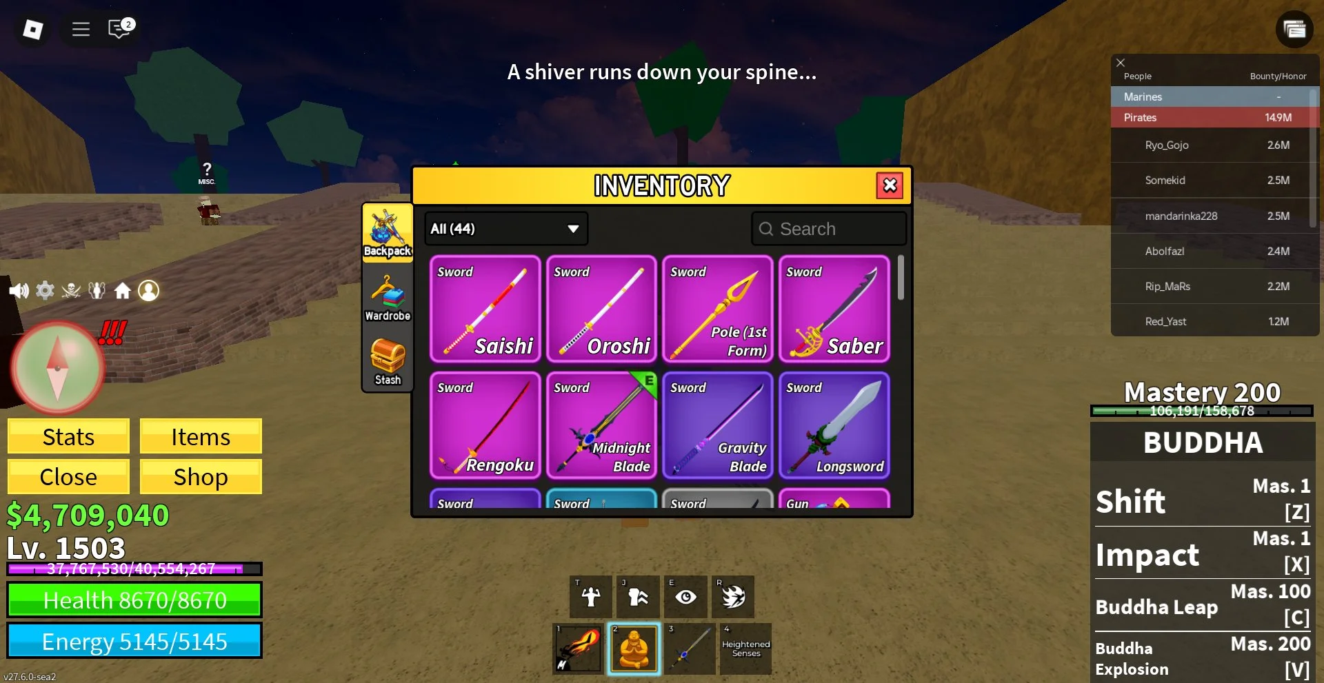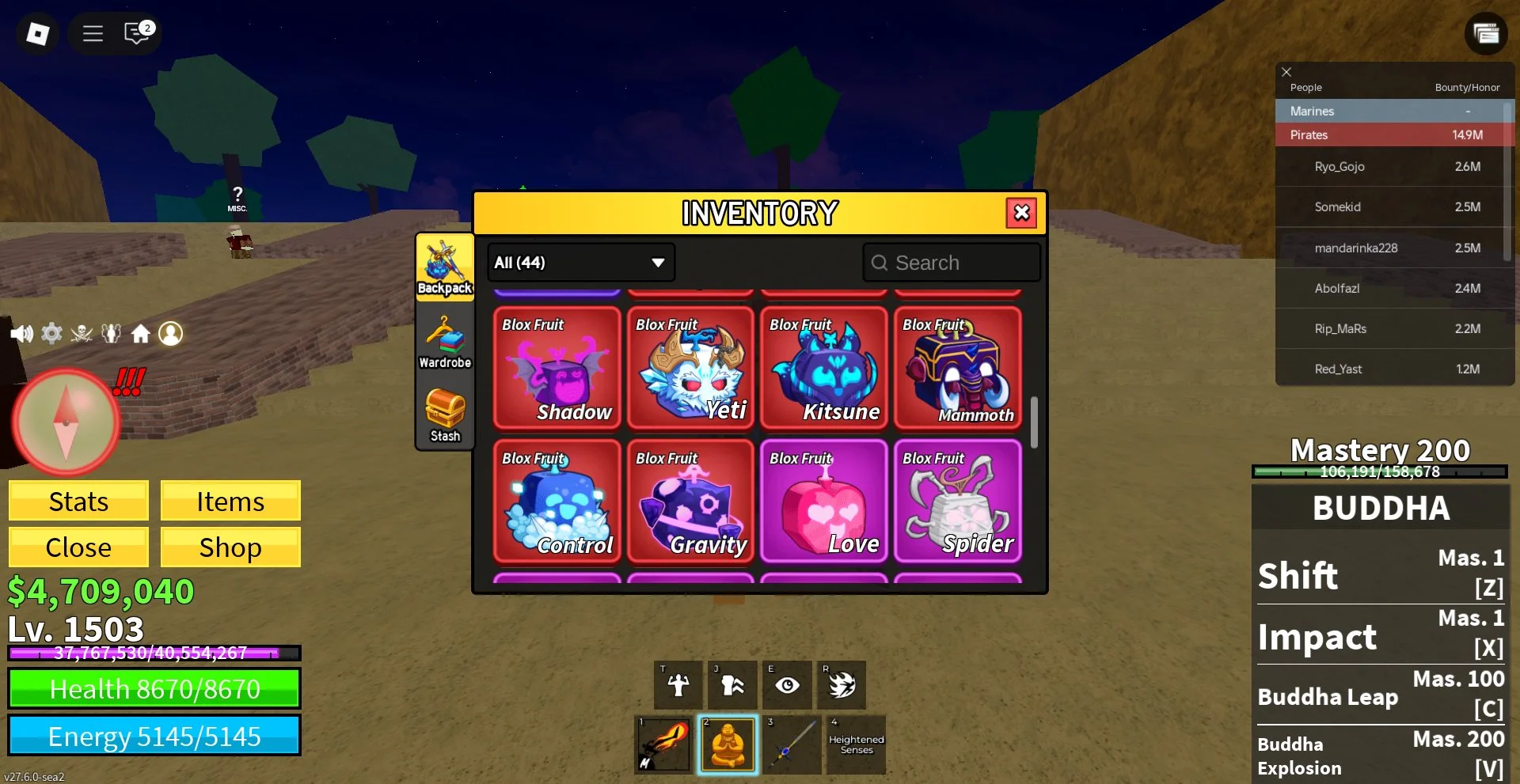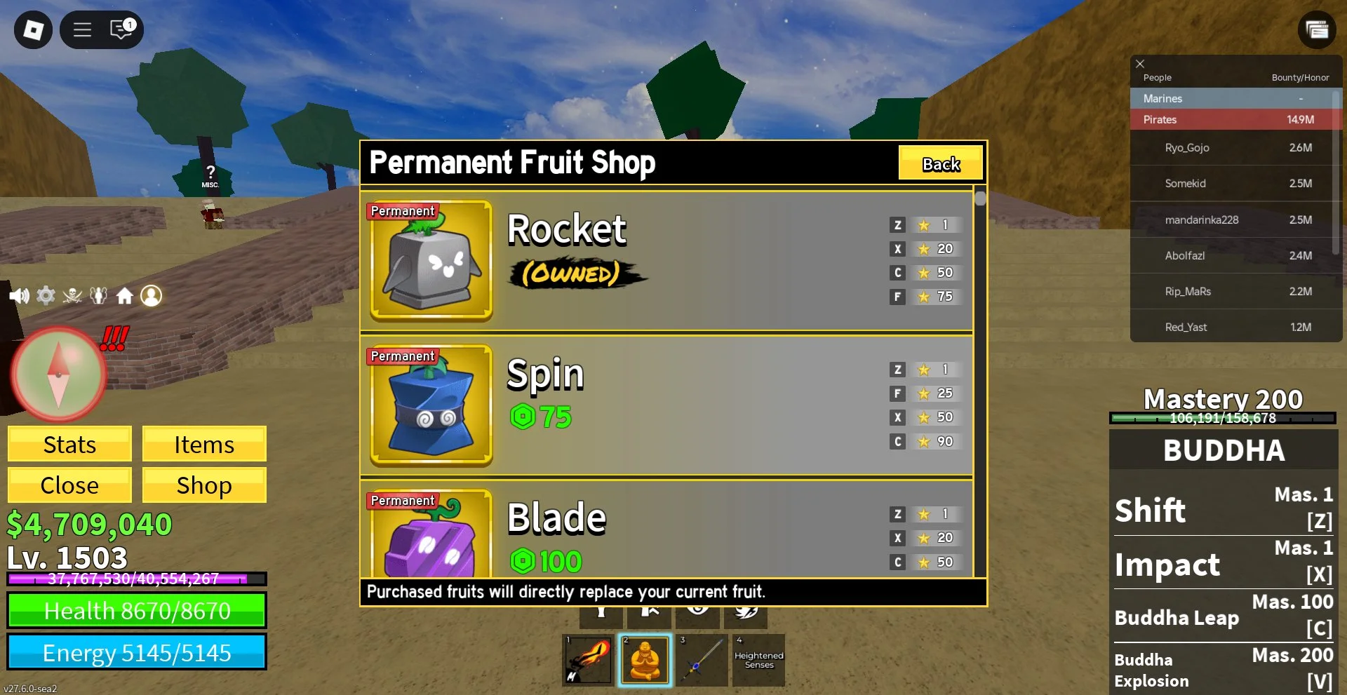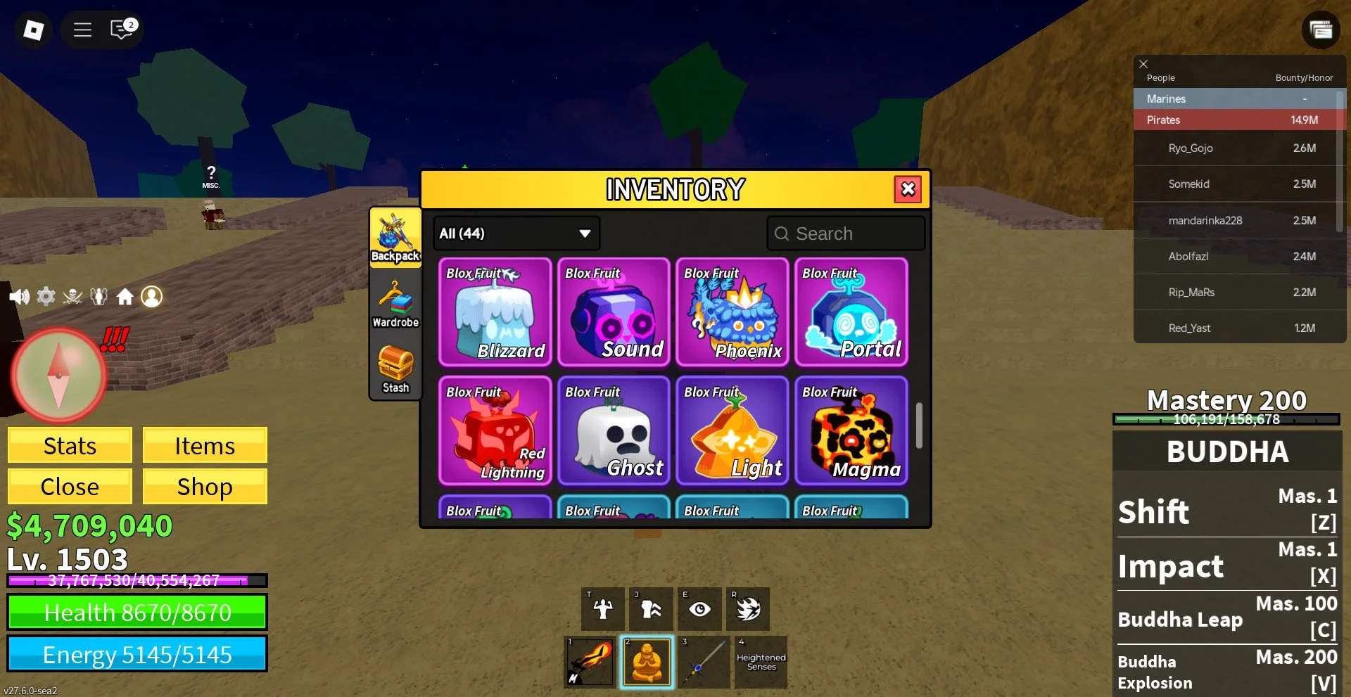RBL2405 //Blox Fruits account 1503lvl | Blizzard, Sound, Phoenix, Portal, Red Lightning (K)