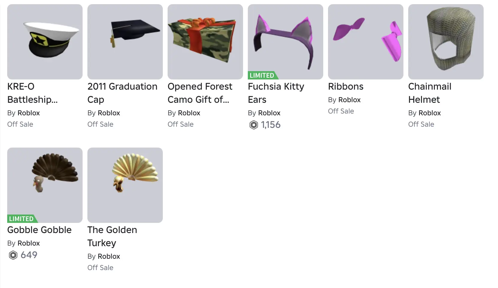 ROBLOX 2009 Account 🔥12+ Offsales & Limiteds 🔥 Fuchsia Kitty Ears + Ribbons + The Golden Turkey + Christmas Tree Ornament + Mother's Day Card + Chainmail Helmet + 2011 Graduation Cap + Gobble Gobble | 200+ Robux SPENT | Unverified ✅