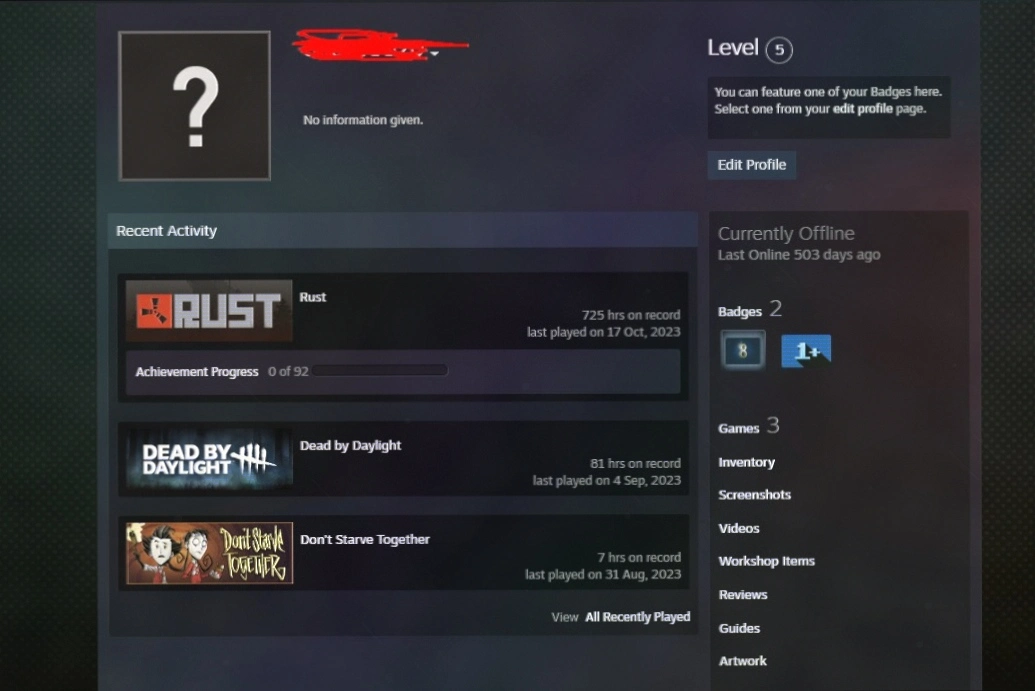 8 Years old Steam+5 LVL+RUST with 700+ AFK HOURS+Don't Starve Together Game+Full Access+Instant Delivery 24/7 #REF-165486