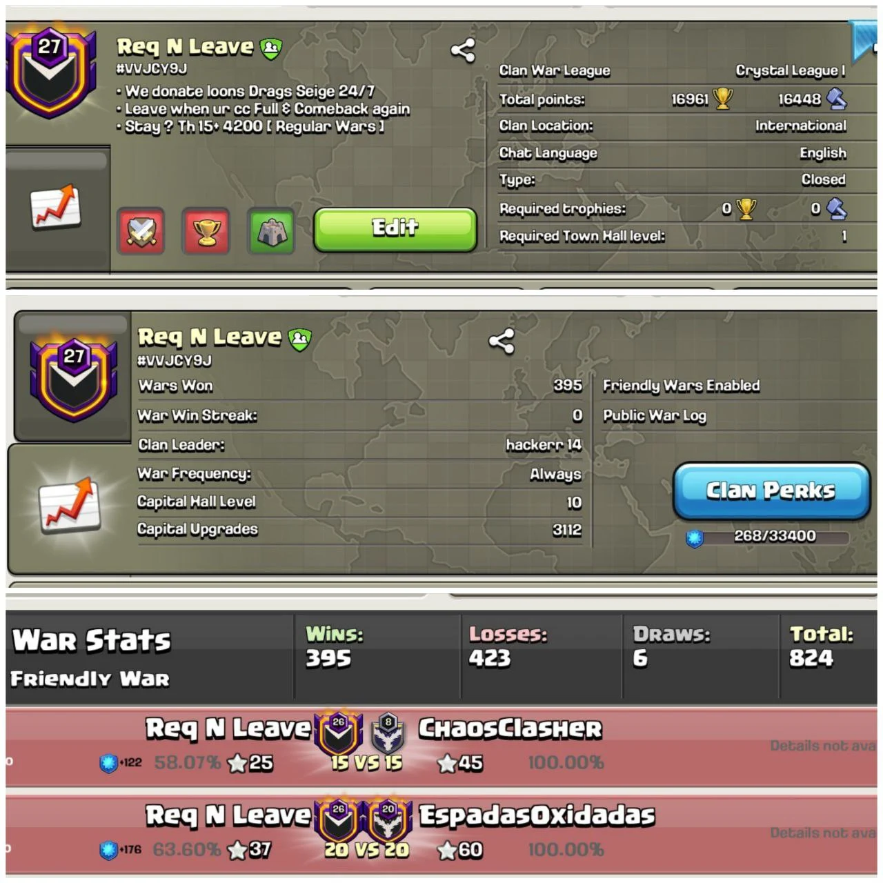 ♦️ SUPER RARE 7 DIGIT ♦️ LEVEL 27 ♦️ Req N Leave ♦️ CLAN CAPITAL 10 ♦️ CRYSTAL 1 ♦️ 395:423 WAR LOG ♦️ BEST CLAN FOR DONATION🧨INSTANT DELIVERY🧨