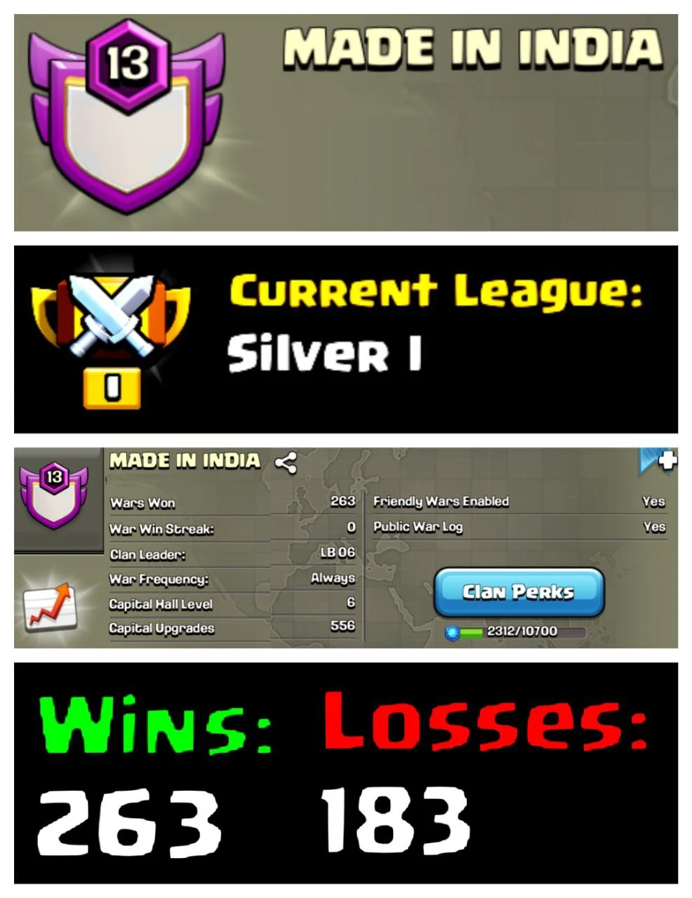 🍀GREAT DEAL🍀 ❤🔥OP LEVEL 14 ENGLISH CLAN ✨ OP NAME : HINDUSTANI💥 LEAUGE : SILVER 1♨️ CLAN CAPITAL : 7 🤝 WINS : 288 | LOSS : 272❣️BEST CLAN BUY NOW ⚡ FAST DELIVERY🚚