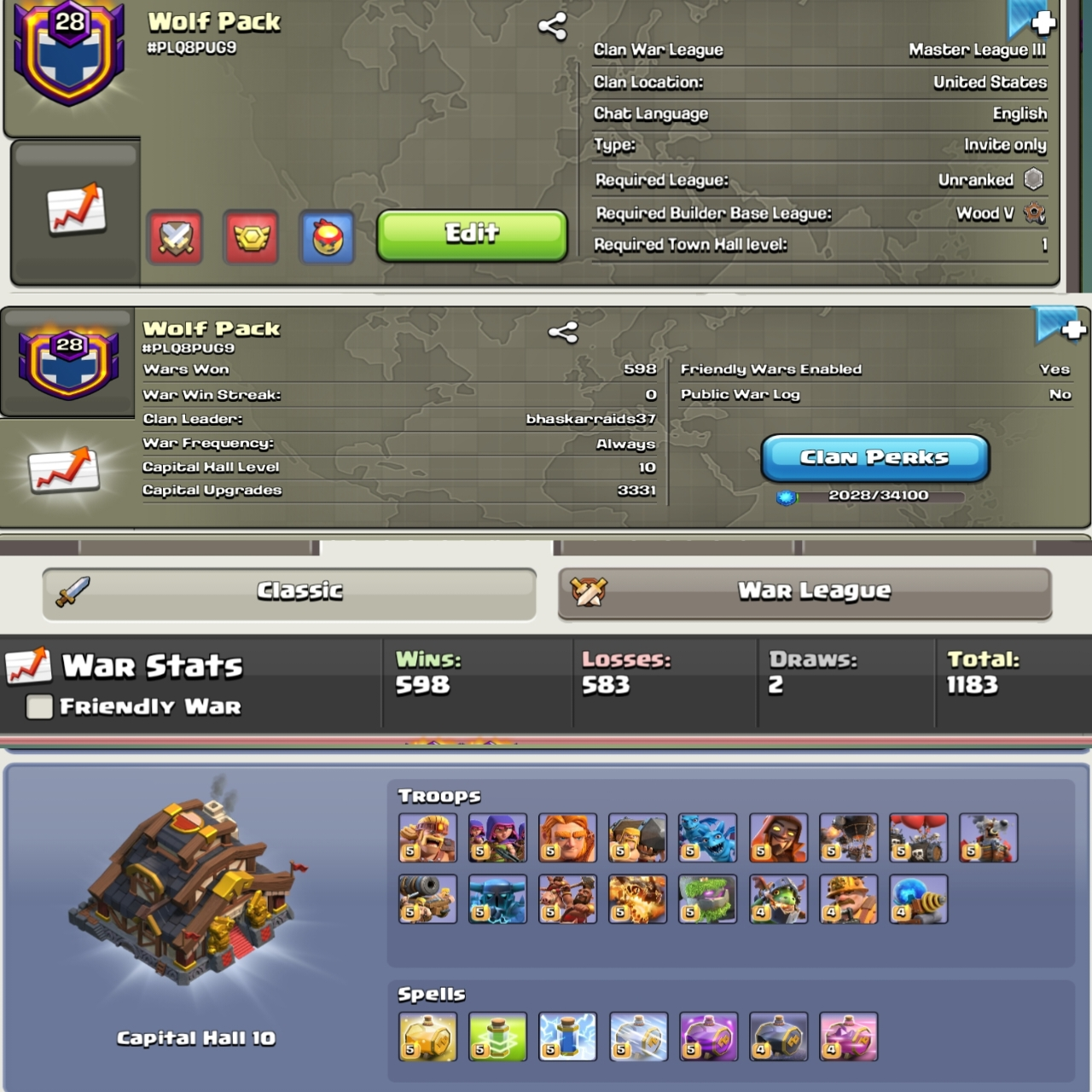 [AB] COOL NAME -- WOLF PACK | MASTER LEAGUE 3 | CAPITAL PEAK 10 | 2028 POINTS | 598 WINS - 583 LOSSES | FULLY MAXED OUT CAPITAL HALL | CHEAP PRICE | INSTANT DELIVERY