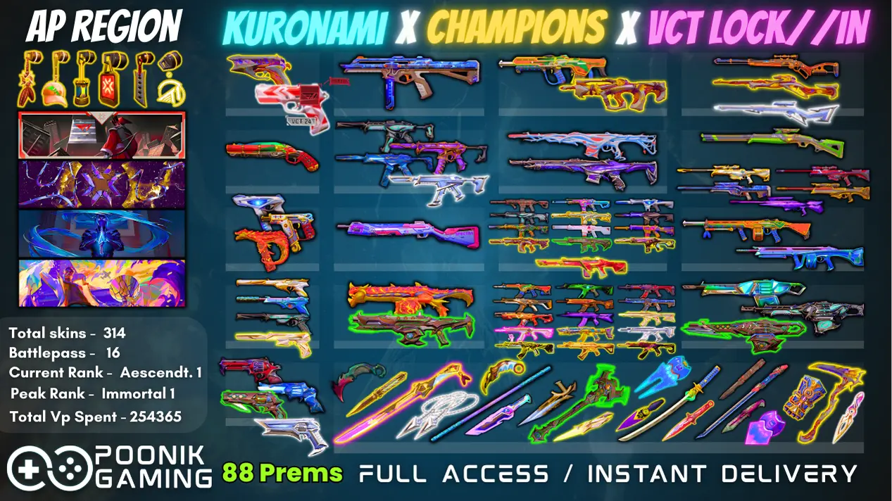 315 SKINS ⸱ AP REGION | VCT KNIFE, CHAMPIONS 2021, 2023, 2025, ARCANE 2.0, MYSTBLOOM, EVORI, KURONAMI, VCT CLASSIC![V617]