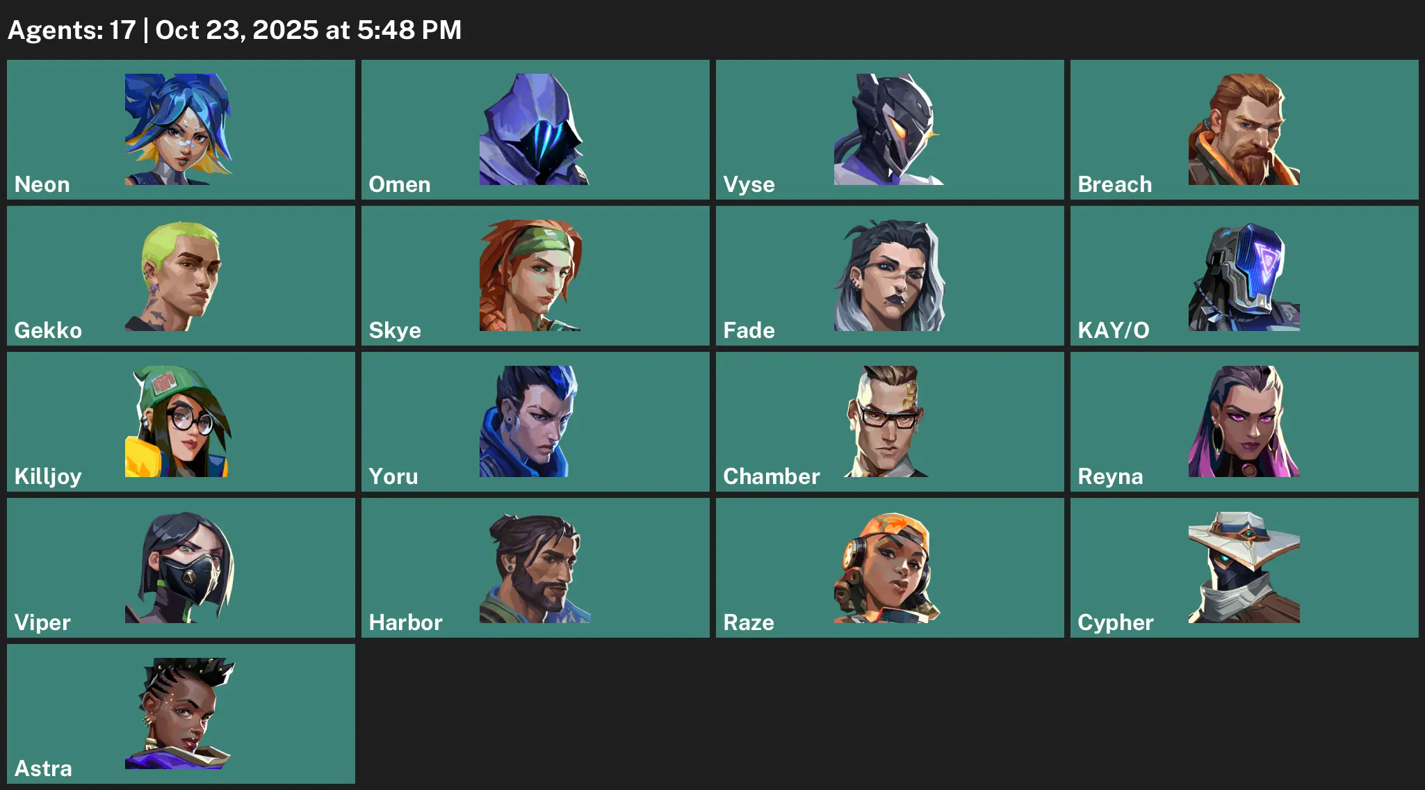 🤿 AP 🫥 Unranked 🦔 2 Skins 👣 525 VP 🤏 17 Agents 🪖 Value: 1775 VP 🦤 Reaver Vandal 🚊 Vendetta Ghost