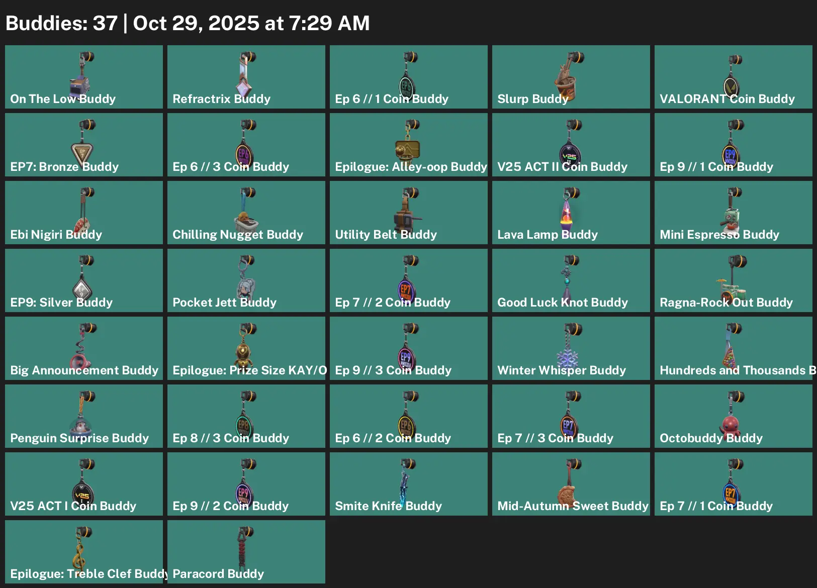 🛢 AP 📤 Unranked 🧯 9 Skins 😜 285 VP 🕶 21 Agents 🧗♂️ Value: 1275 VP ⚗️ Overlay Sheriff 🎑 Byteshift Judge 🤬 Aristocrat Ares 👕 Sandswept Sheriff 🦻 Transition Shorty 🥚 Doom Wing Shorty