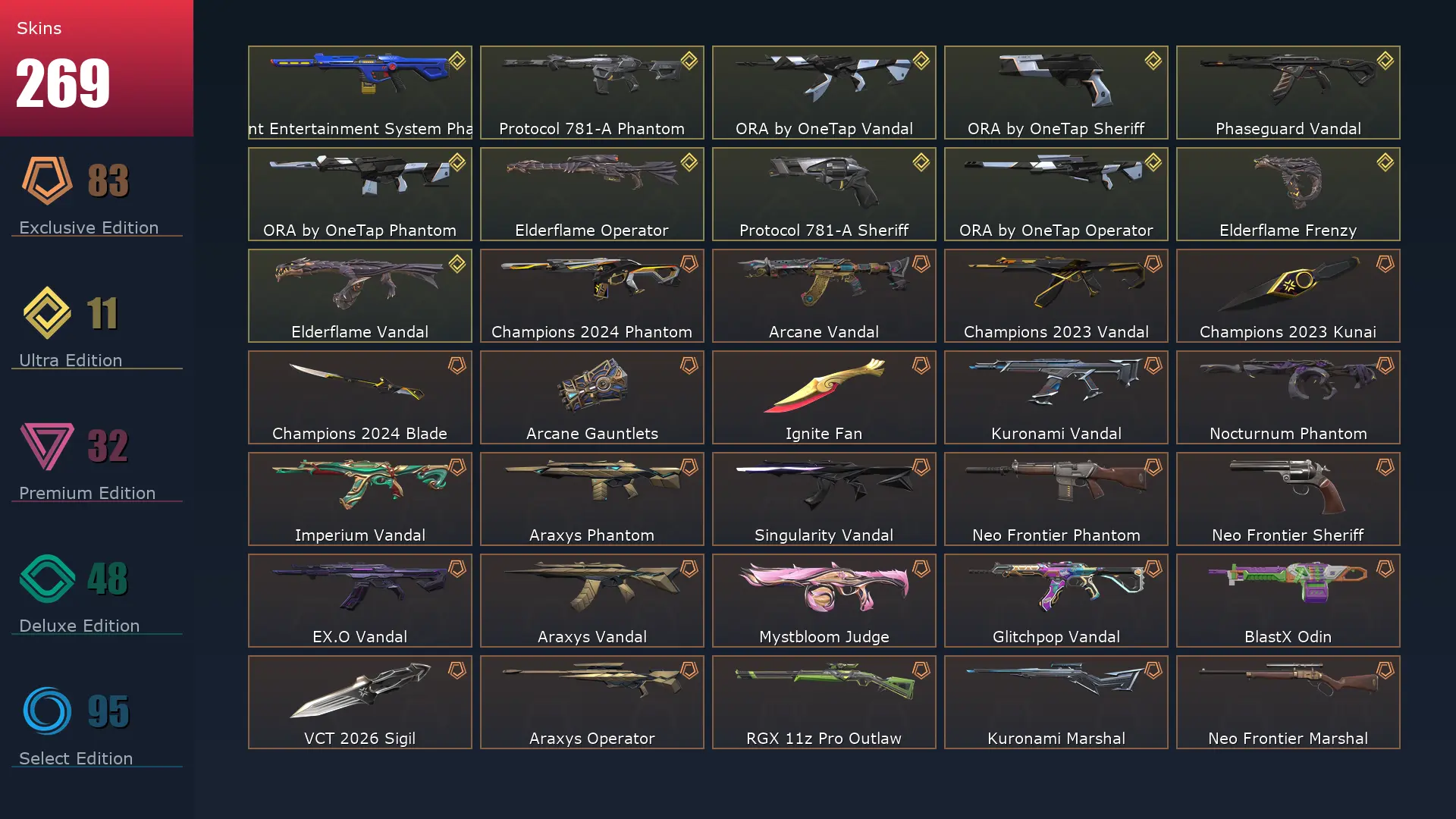 EU 💺 269 Skins 🥚 Platinum 3 😡 29 Agents 👾 287 Level 🎸 Champions 2024 Phantom 🍲 Arcane Vandal 📆 Champions 2023 Vandal 😎 Champions 2023 Kunai 🍳 Champions 2024 Blade 🛏 Arcane Gauntlets 🌭 Ignite Fan 🔫 Gaia's Vengeance Ghost