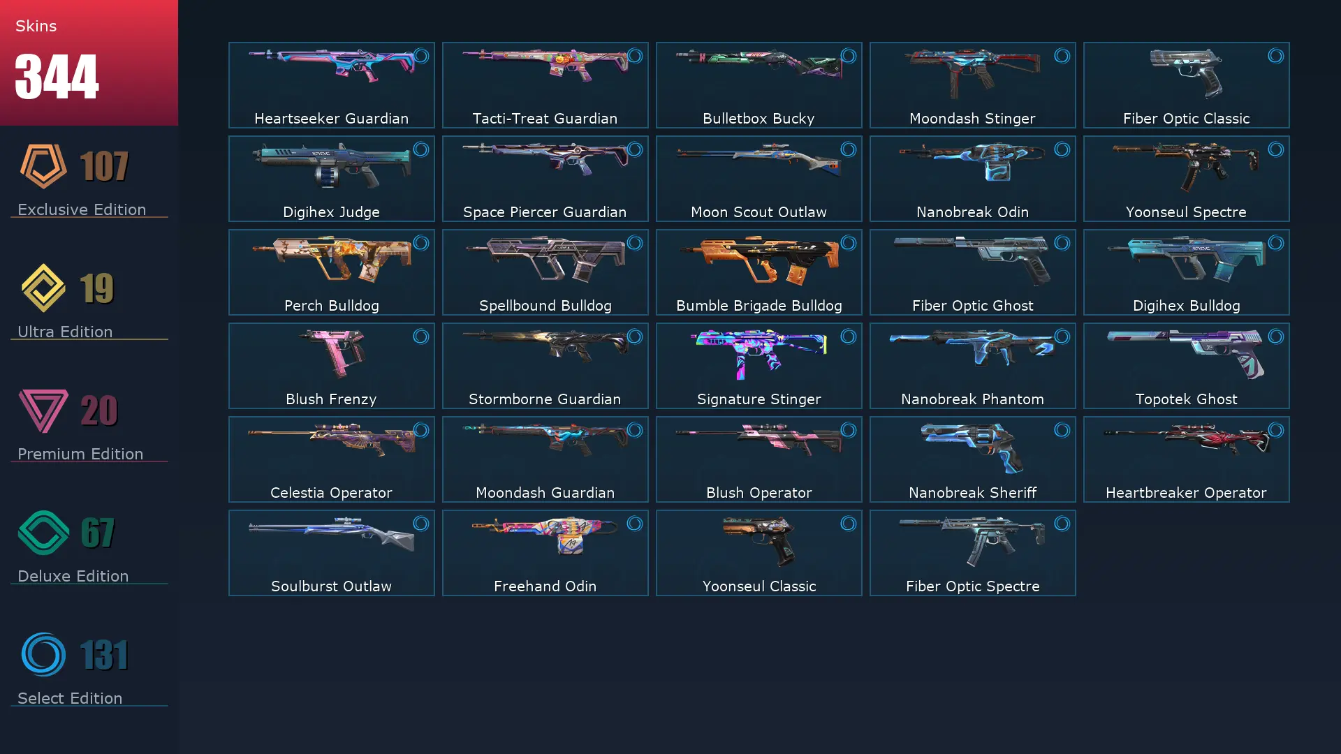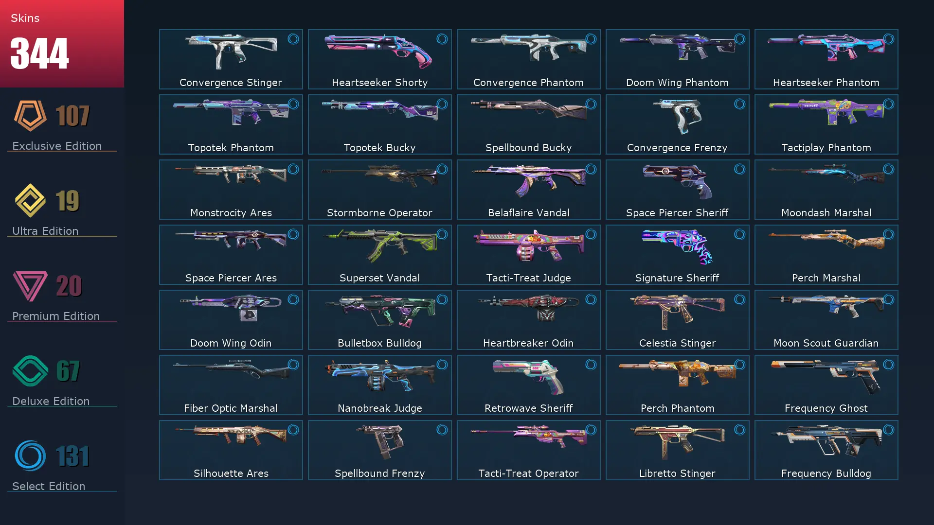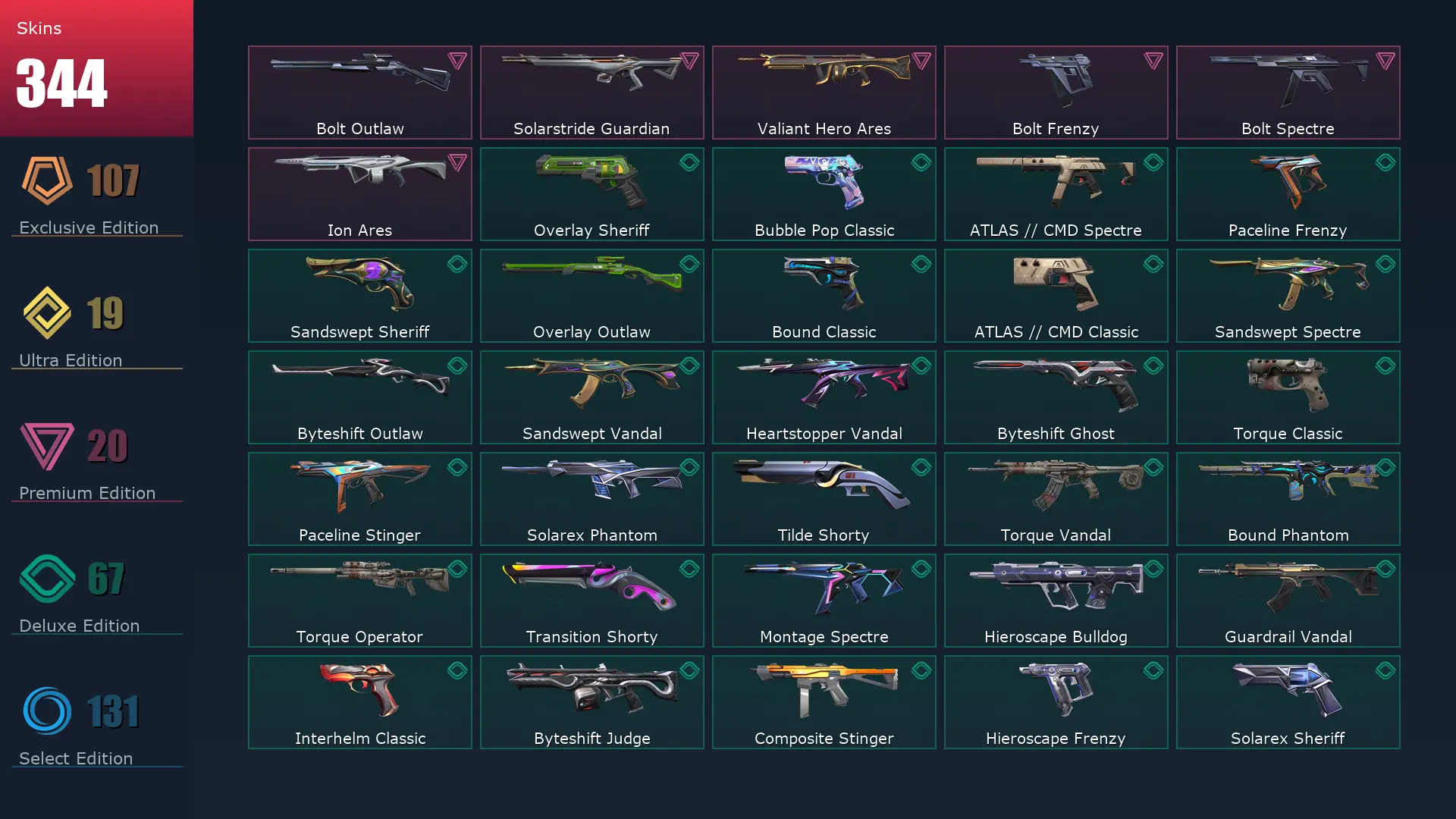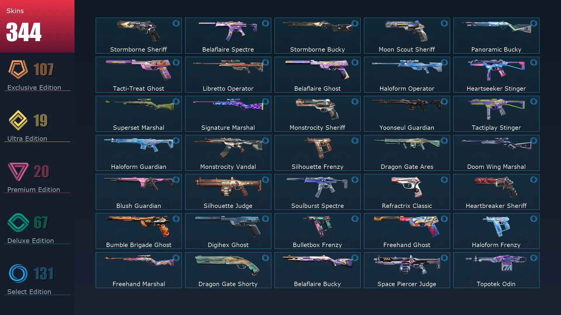 EU 🥪 344 Skins 🛳 Diamond 3 ⛈ 29 Agents ⛱ 459 Level 🤞 Champions 2025 Vandal 👢 Arcane Vandal 👚 Champions 2024 Phantom 🍒 Champions 2023 Vandal 🚍 Champions 2024 Blade 🐩 Champions 2025 Butterfly Knife 🐔 Champions 2023 Kunai 🎪 Ignite Fan