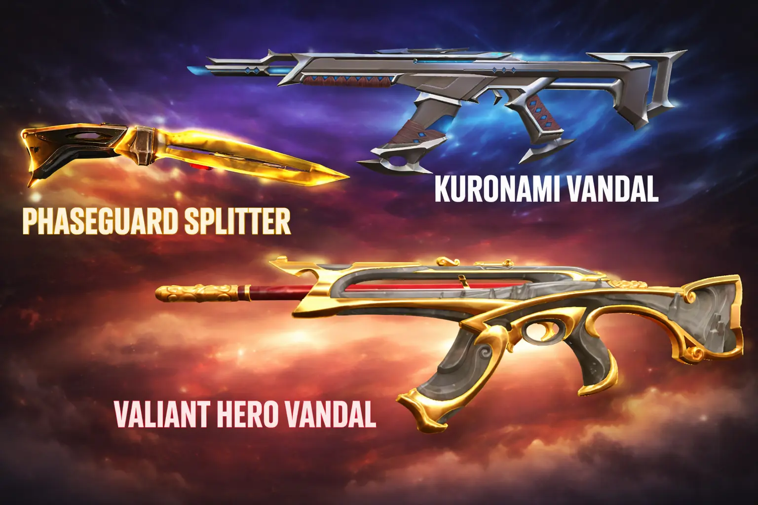 🔥 Kuronami Vandal + Valiant Hero Vandal + Phaseguard Splitter 🔥 God Tier Skin Account Peek Diamond 3