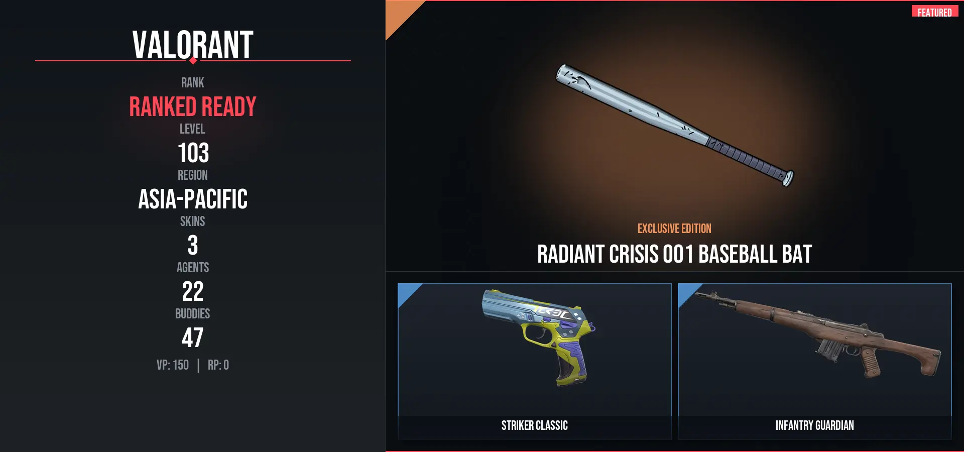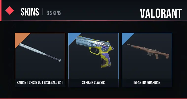 3 Skins / 4425 VP SPENT / Radiant Crisis 001 Baseball Bat