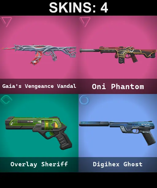 4 SKINS | ONI PHANTOM | GAIA'S VENGEANCE VANDAL | OVERLAY SHERIFF | DIGIHEX GHOST | NA | GOLD 2 | 15 AGENTS | FULL ACCESS | SCREENSHOTS INSIDE