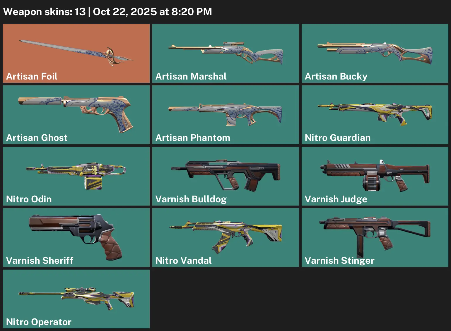AP | 13 Skins | exp BRONZE 3 | Artisan Foil | Nitro Vandal | Artisan Phantom | Nitro Operator | Artisan Ghost | Artisan Marshal | Artisan Bucky | S4G