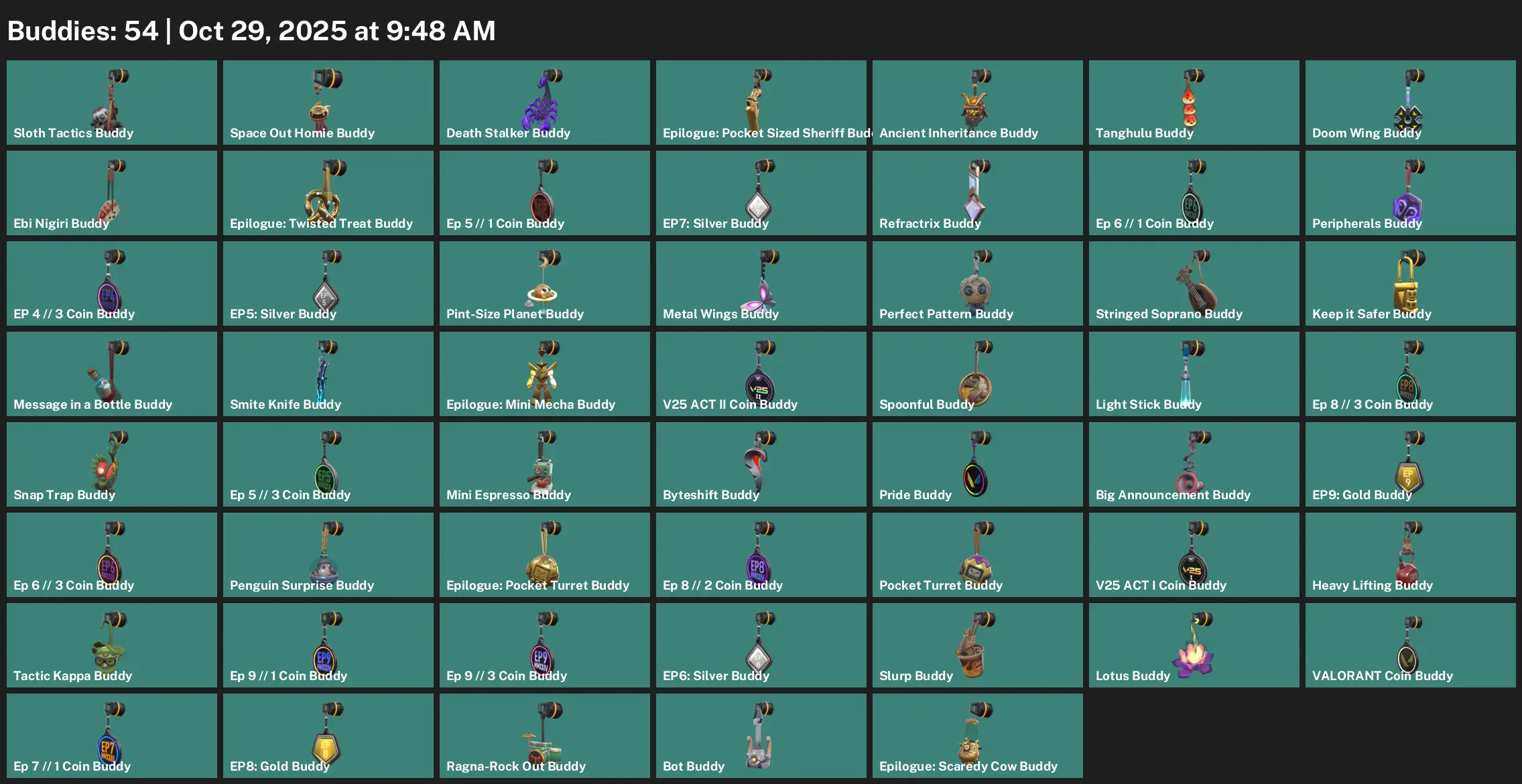 ๐ถ AP ๐ Unranked ๐ฆ 23 Skins ๐ 107 VP ๐ธ 22 Agents ๐ Value: 7500 VP ๐ Byteshift Knife ๐ Primordium Vandal ๐ Origin Vandal ๐ก Recon Phantom ๐ชก Bolt Phantom ๐ฆฅ Sovereign Phantom
