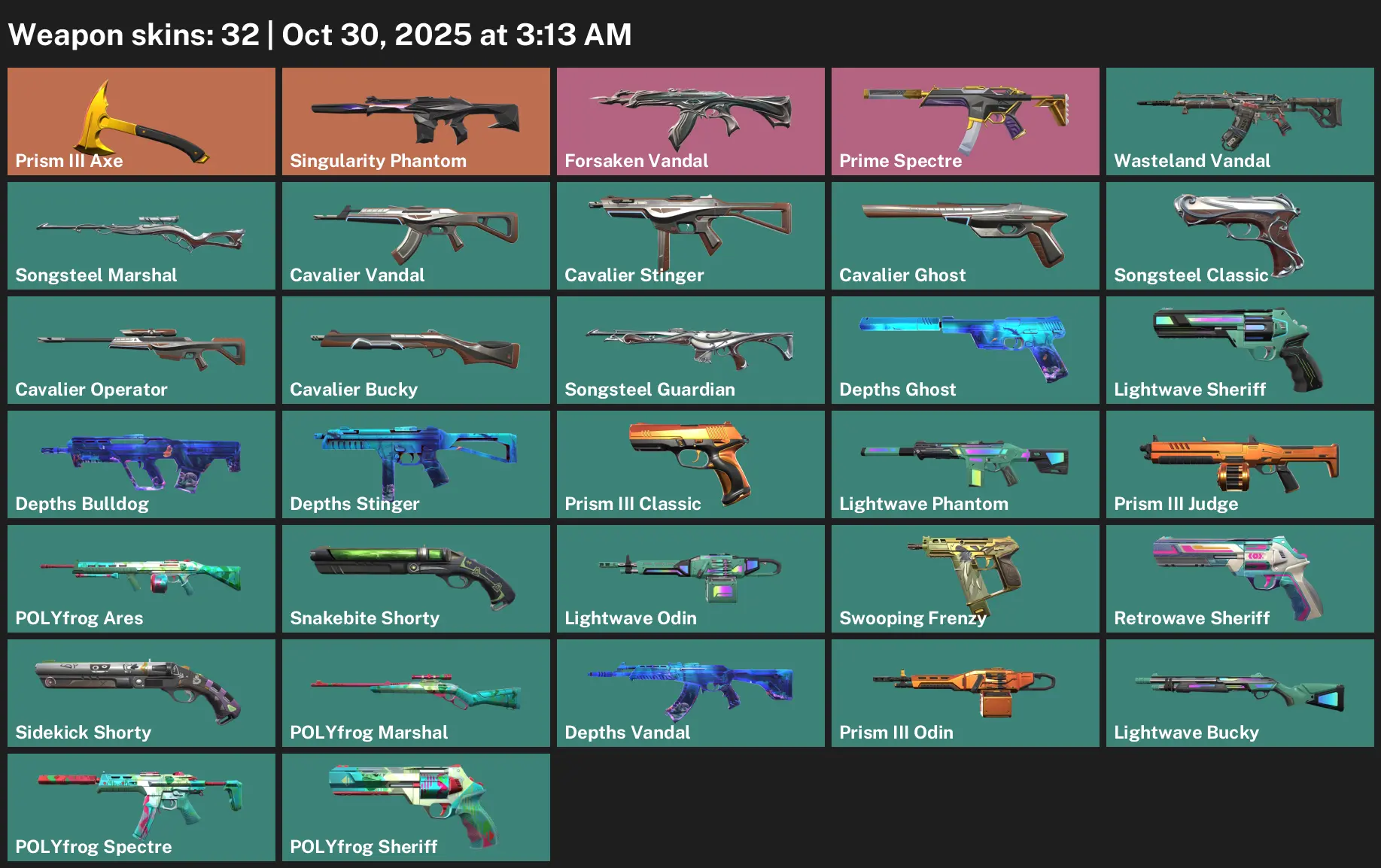 ๐ฏ AP ๐ฅง Unranked ๐ฉฐ 32 Skins ๐ธ 185 VP โฐ 19 Agents ๐ Value: 7000 VP ๐ข Prism III Axe ๐ Singularity Phantom ๐ฆง Forsaken Vandal ๐คนโโ๏ธ Prime Spectre โ Wasteland Vandal ๐ Songsteel Marshal