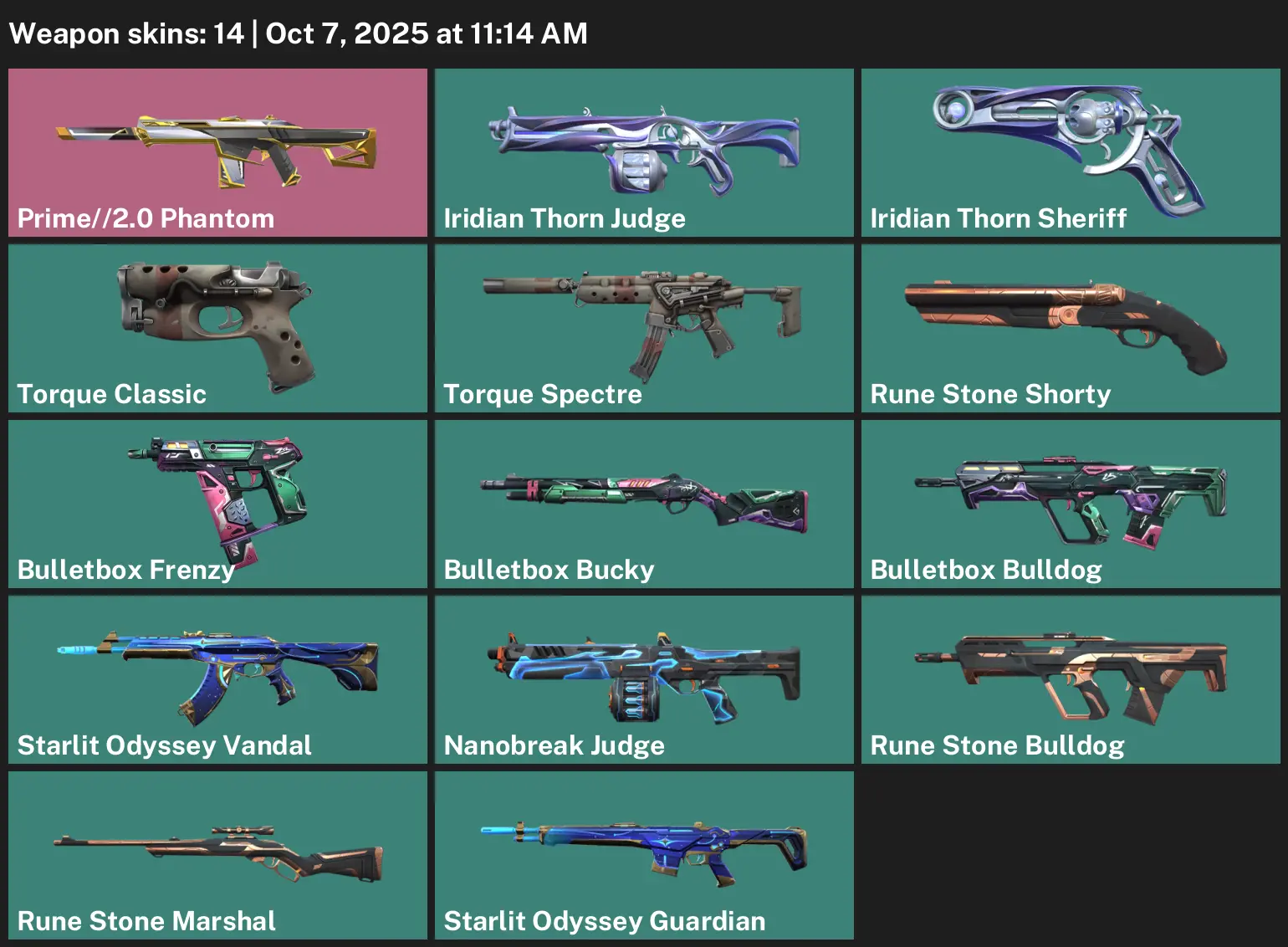 EU | 14 Skins | exp IRON 3 | Prime//2.0 Phantom | Starlit Odyssey Vandal | Rune Stone Marshal | Iridian Thorn Judge | #WKF7603 | #MBFN