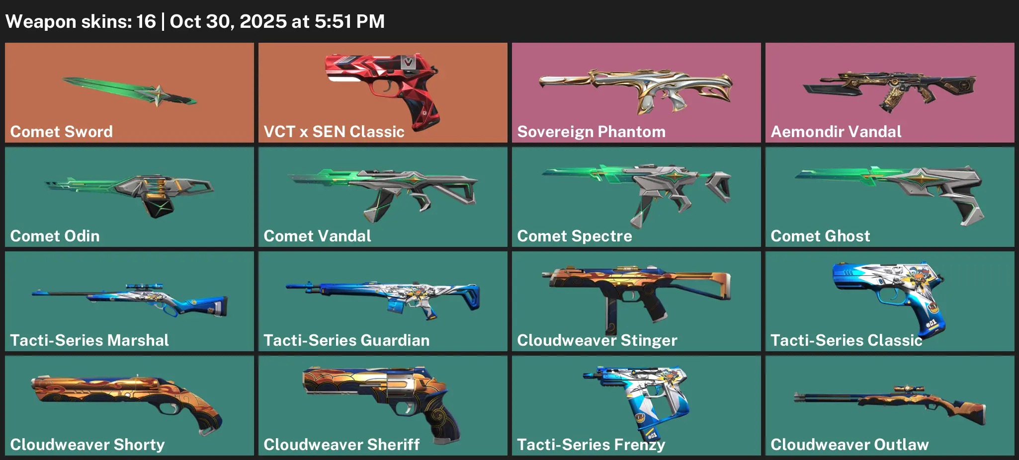 EU | 16 Skins | exp GOLD 2 | Comet Sword | VCT x SEN Classic | Sovereign Phantom | Aemondir Vandal | Comet Odin | #JIR6494 | #MBFN