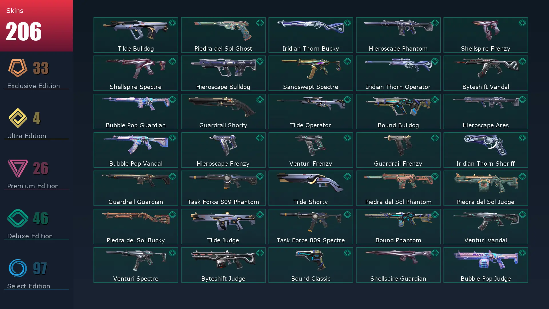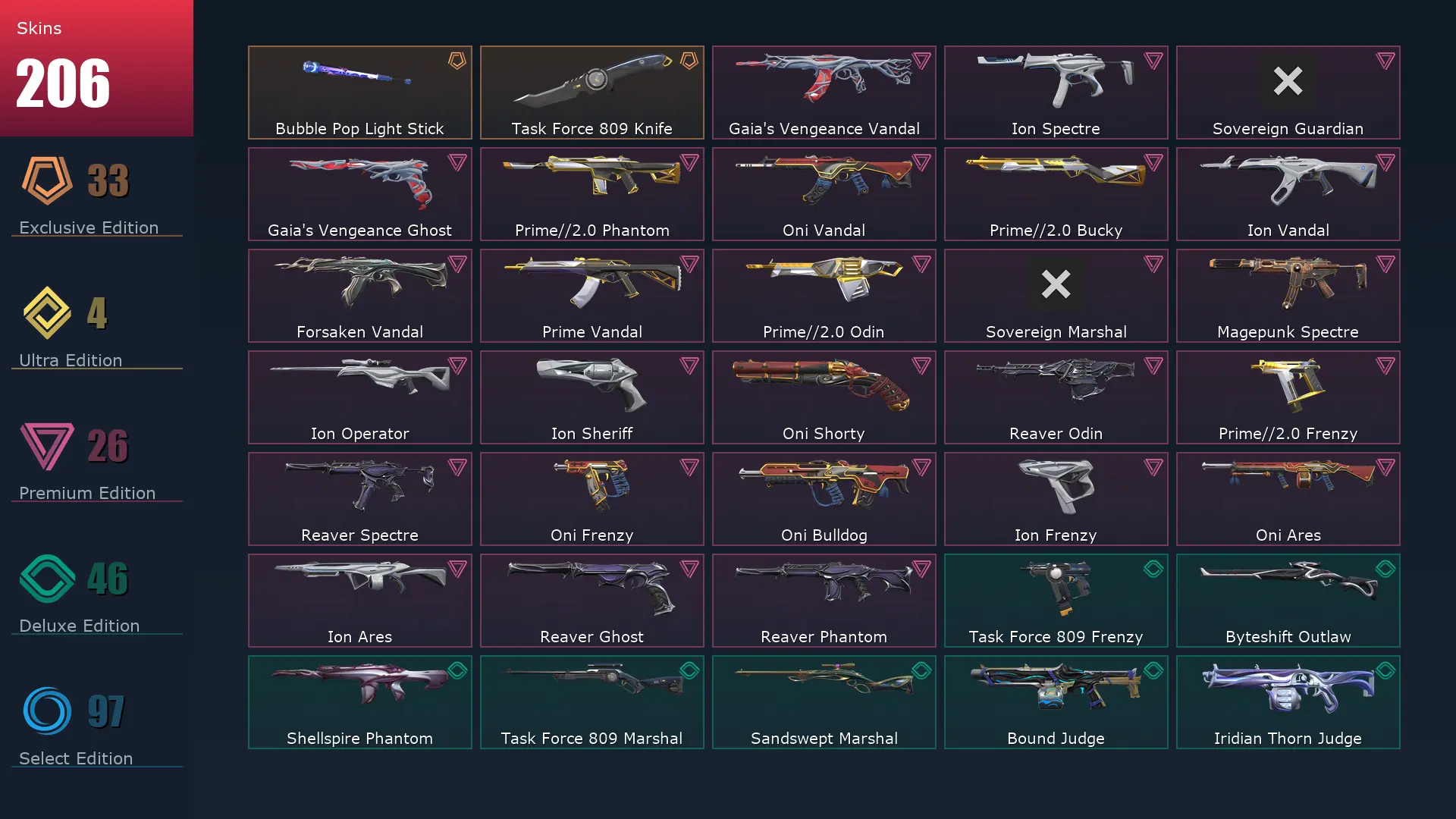 EU ðĩ 206 Skins ðđ 26 Agents ðļ 232 Level ðŠ Champions 2024 Phantom ðŦ Champions 2024 Blade ð RGX 11z Pro Vandal ð Reaver Karambit ðĨĨ VCT 2025 Karambit ð Prime//2.0 Frenzy ðŦ Neo Frontier Odin ð Ion Sheriff ð