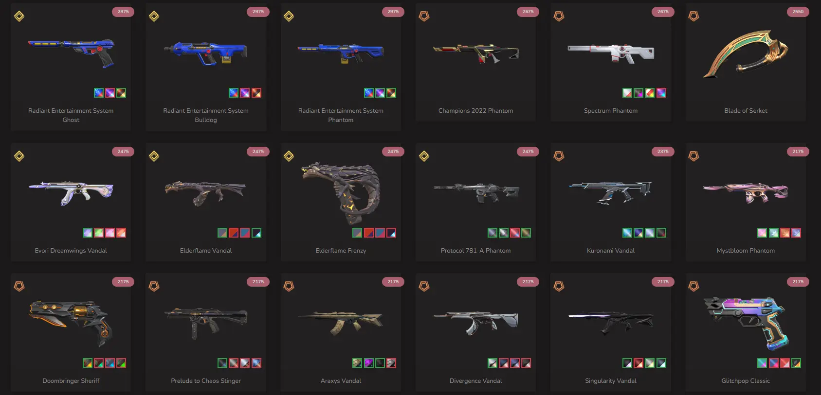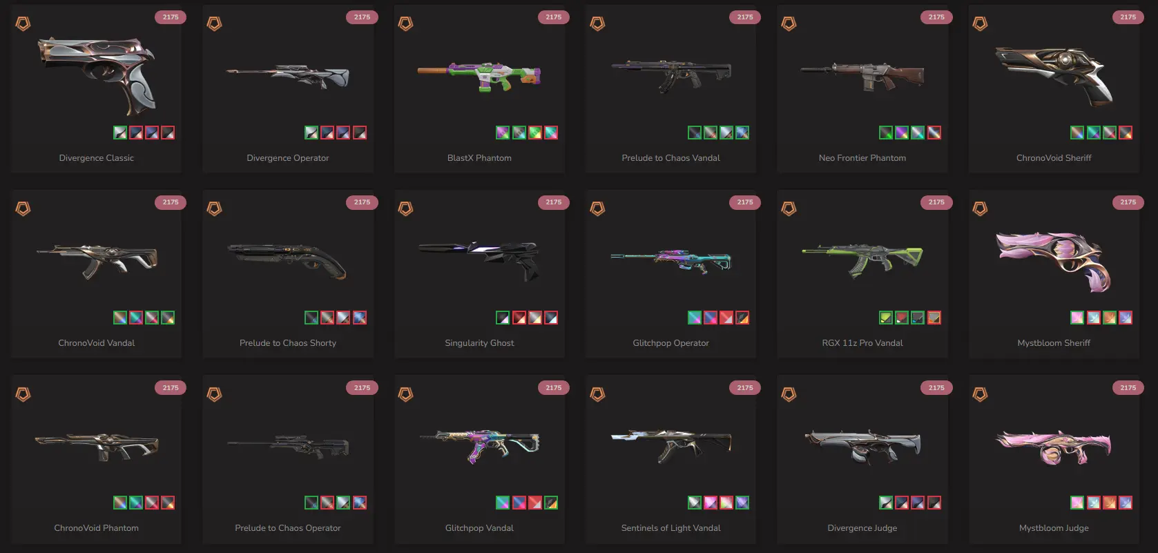 ( EU ) 222 Skins | Champions 2022 Bundle | Spectrum Bundle | Divergence Bundle | Prelude to Chaos Bundle | Mystbloom Bundle | Kuronami Vandal