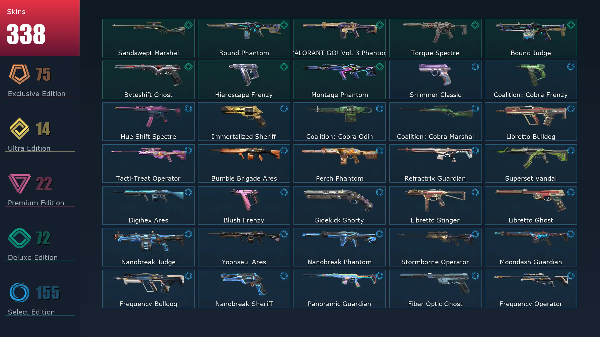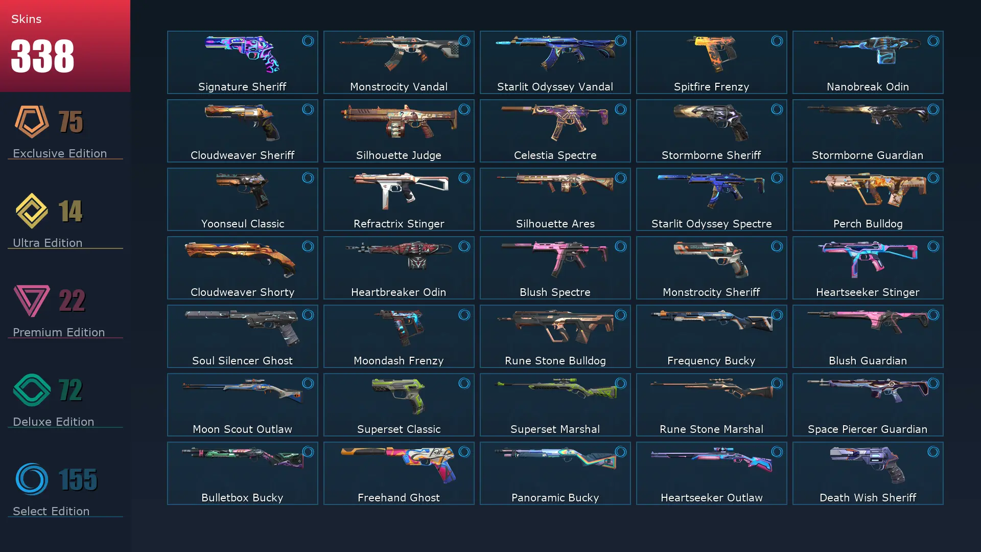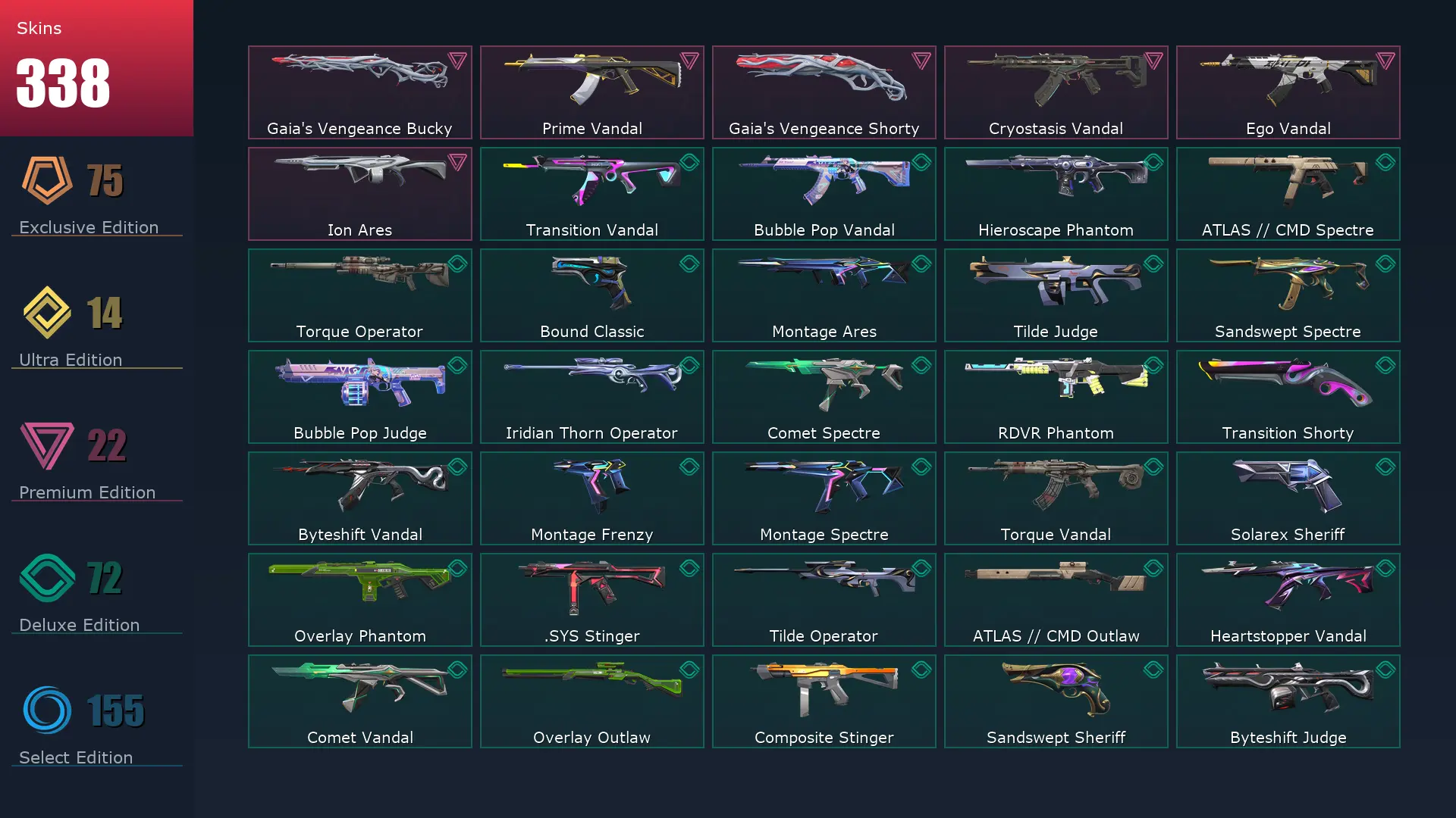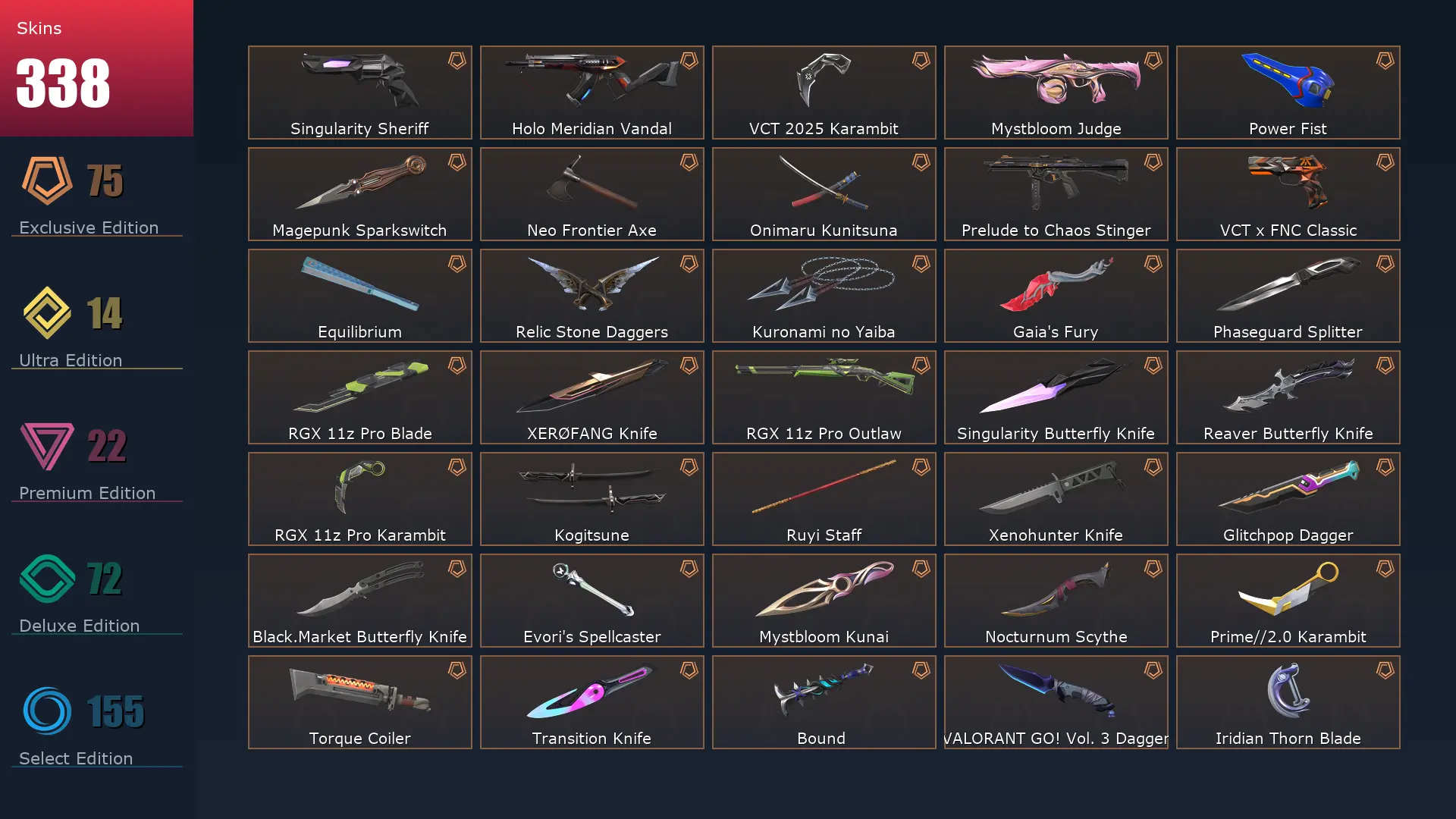EU 💒 338 Skins 🐋 Diamond 3 💣 29 Agents 🛥 500 Level 😹 Arcane Vandal 🐨 Arcane Gauntlets 🐈 Sovereign Phantom 🪷 Evori Dreamwings Ghost 🚠 XERØFANG Knife 😷 Equilibrium 💶 Radiant Entertainment System Operator 🌒 RGX 11z Pro Classic