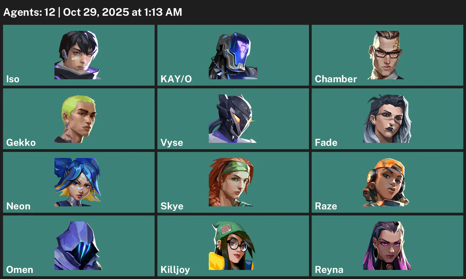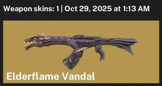 🪕 EU 🛒 Unranked 😈 1 Skins 📞 50 VP 🧭 12 Agents 🪽 Value: 2475 VP 🍱 Elderflame Vandal