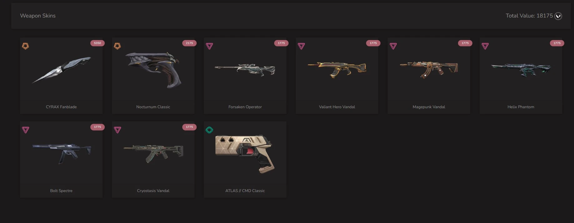 Eu/Tr ⸱ Cyrax Fan Blade / * Valiant Hero +Magepunk +Crytosis Vandal / * Forsaken Operator 12+skins / *Premium Upgraded SKiNS