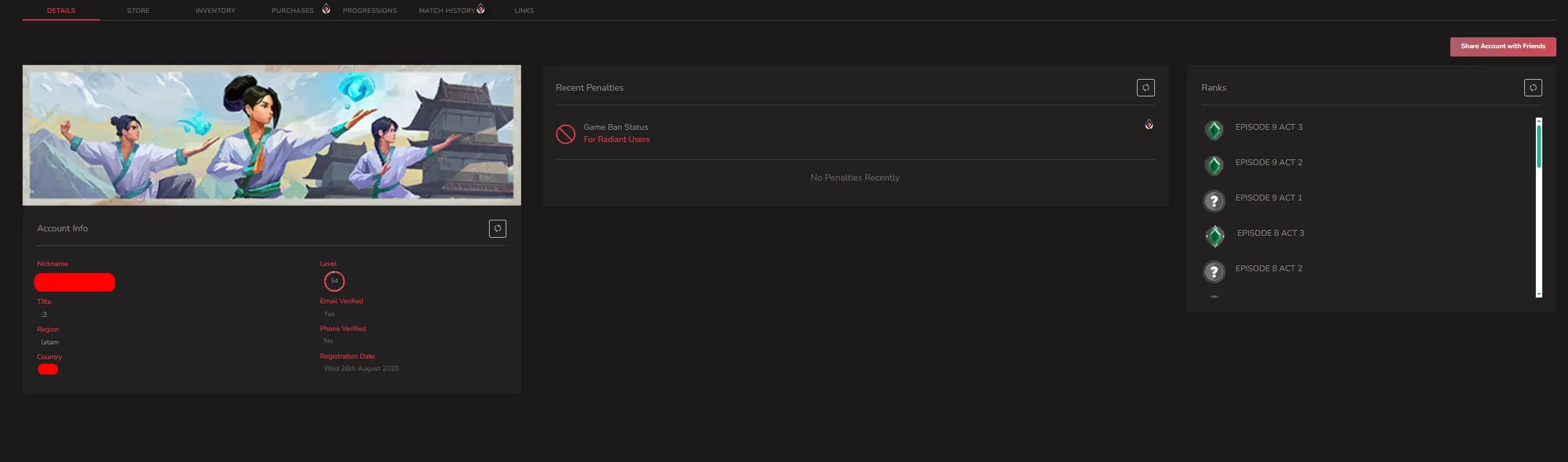 😎[LATAM] ⭐O SKIN ⚡ Level 54⭐ 20 AGENTS✅️UNRANKED😍FULL ACCESS⭐ Handleveled ⚡