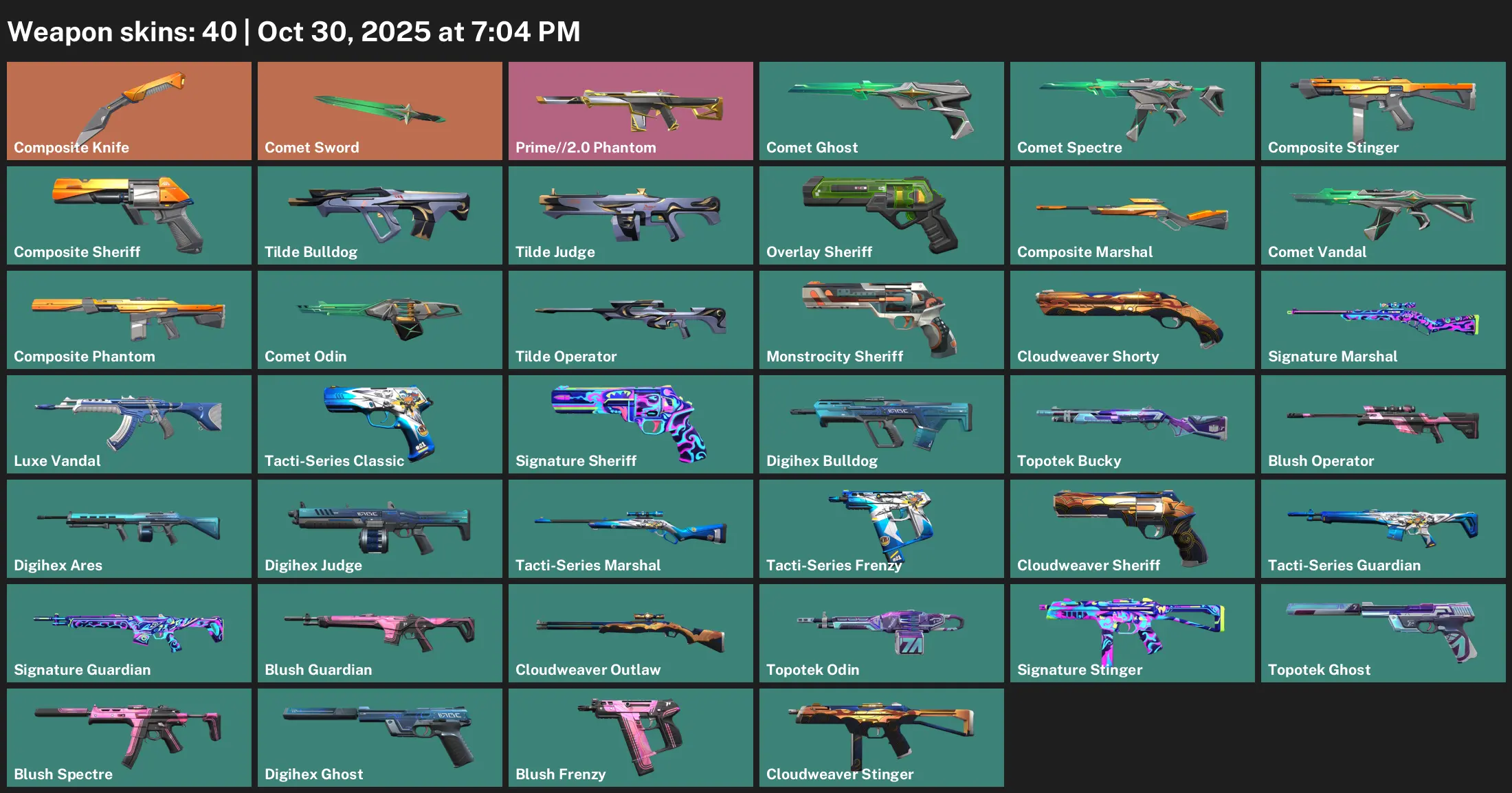 NA | 40 Skins | exp SILVER 3 | Prime//2.0 Phantom | Composite Knife | Composite Phantom | Blush Operator | Tilde Operator | #MKN0646 | #MBFN