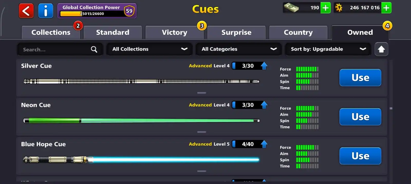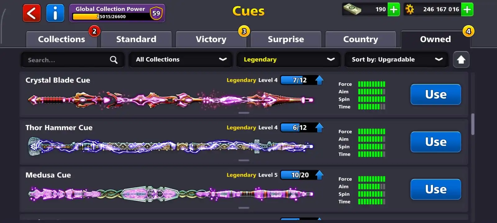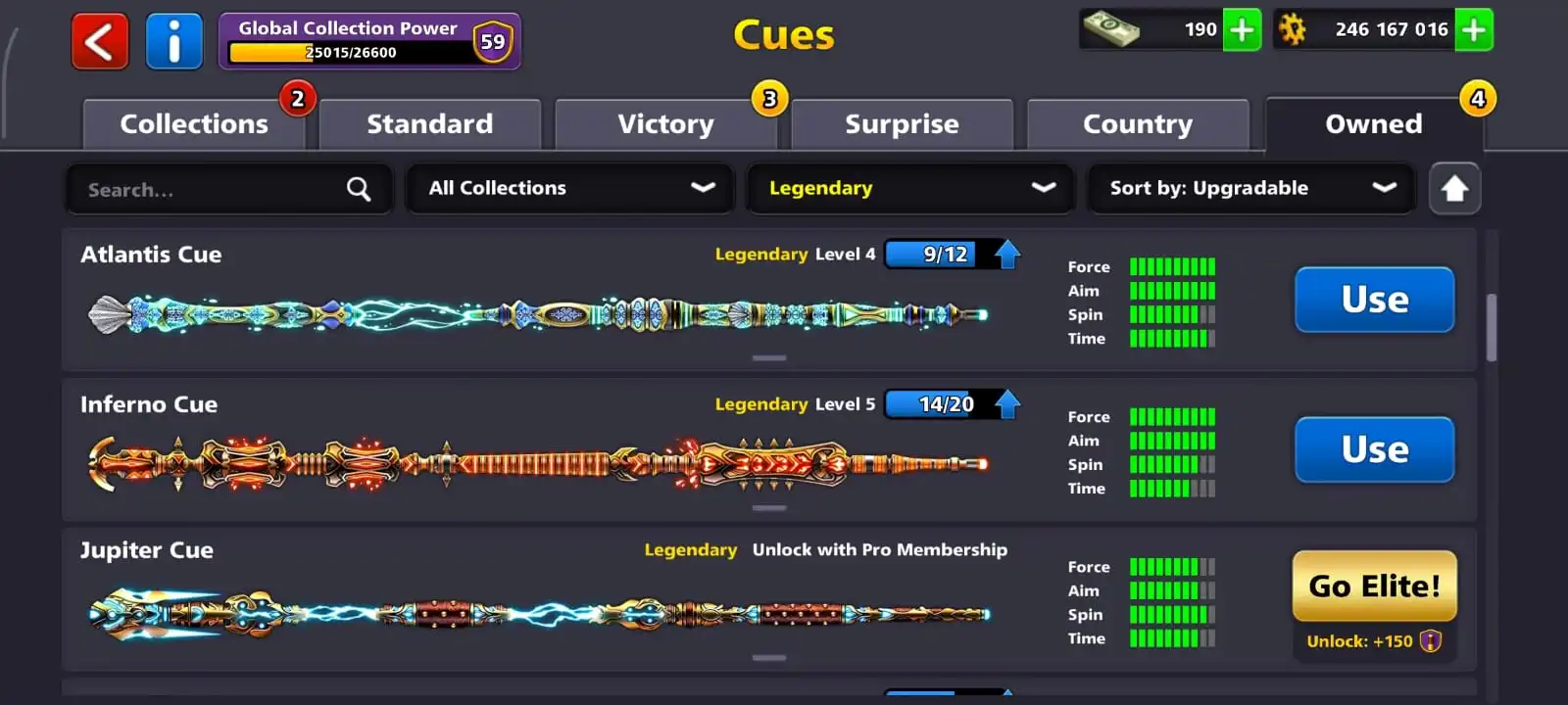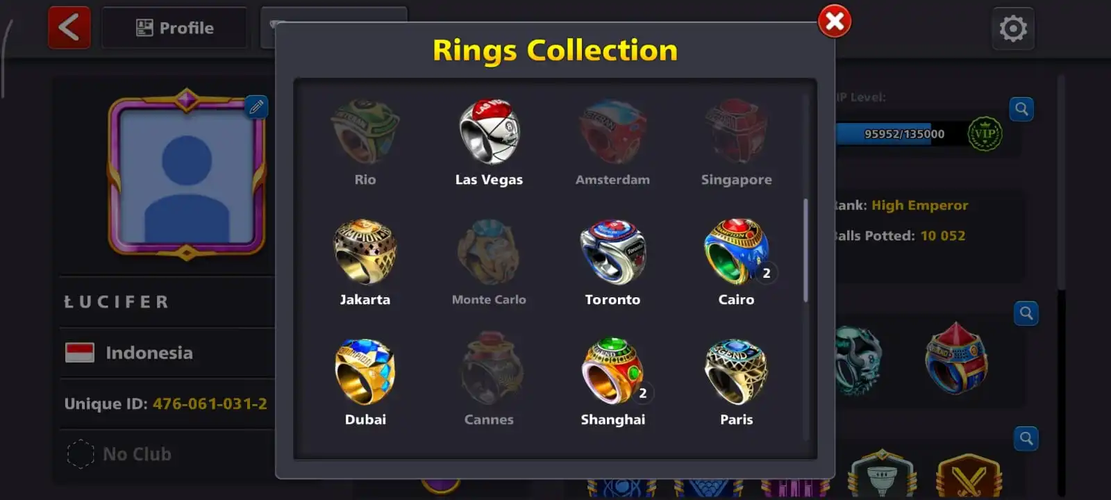 android🔥very rare🔥level 185🔥cue legendary 21🔥coins 246M🔥rare rings🔥full access account🔥