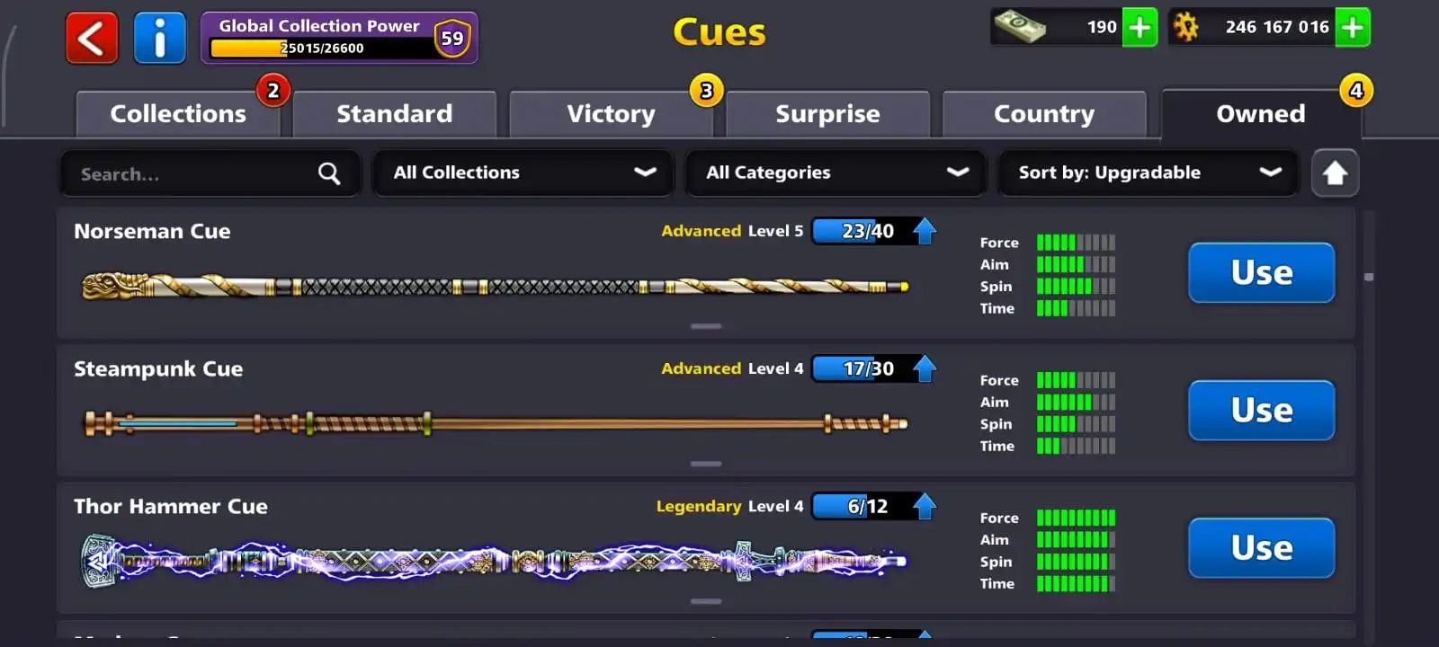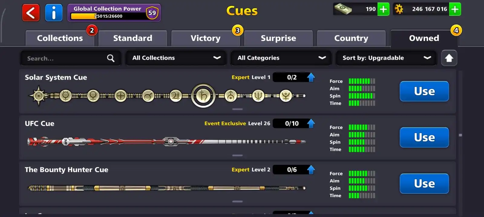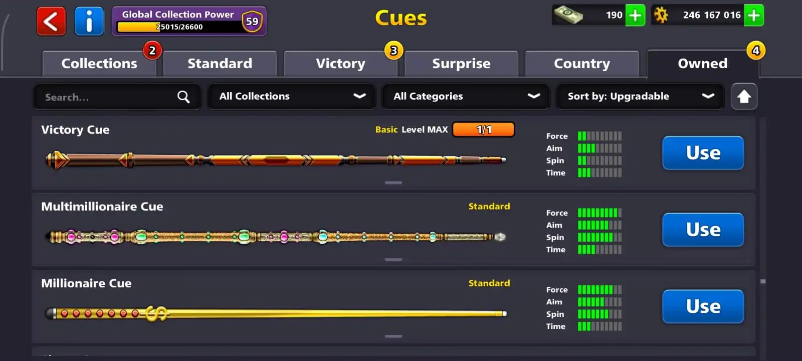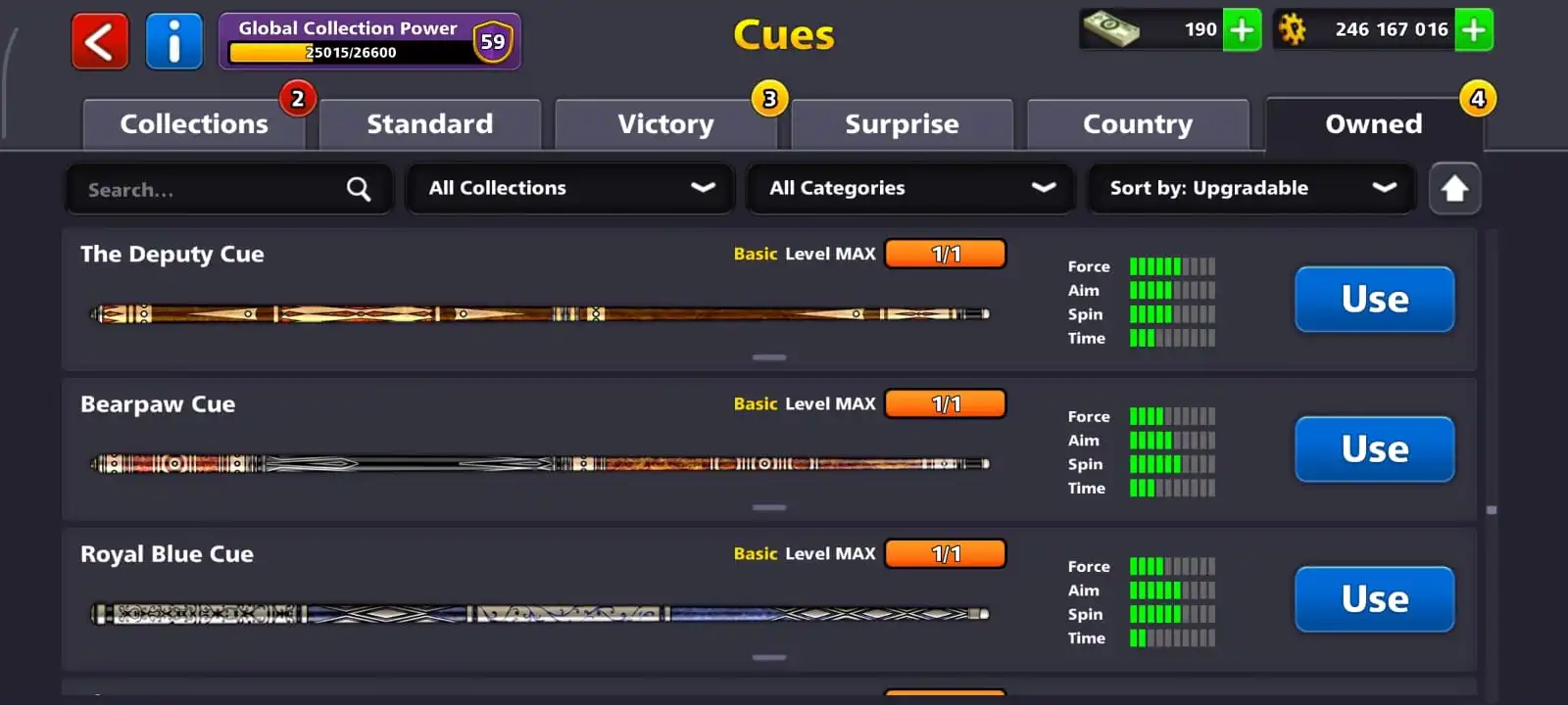 android🔥very rare🔥level 185🔥cue legendary 21🔥coins 246M🔥rare rings🔥full access account🔥