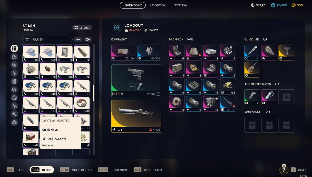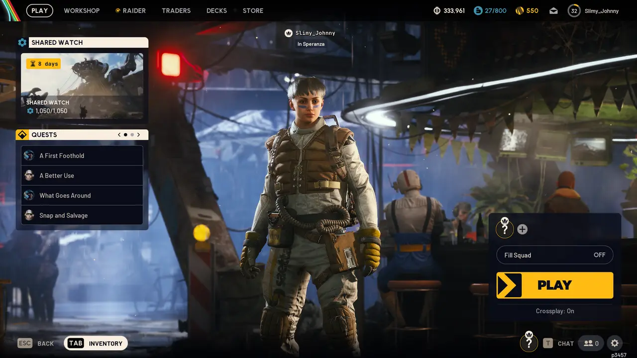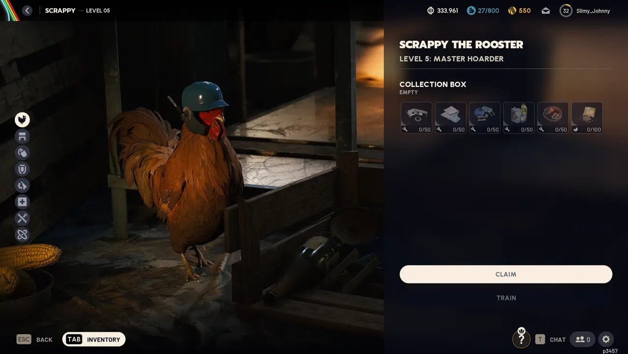 32 LVL + 800k $ ( STASH + CASH ) + ALL BENCHES MAX 3 LVL + SCRAPPY MAX 5 LVL + 550 Raider Tokens + Other Things