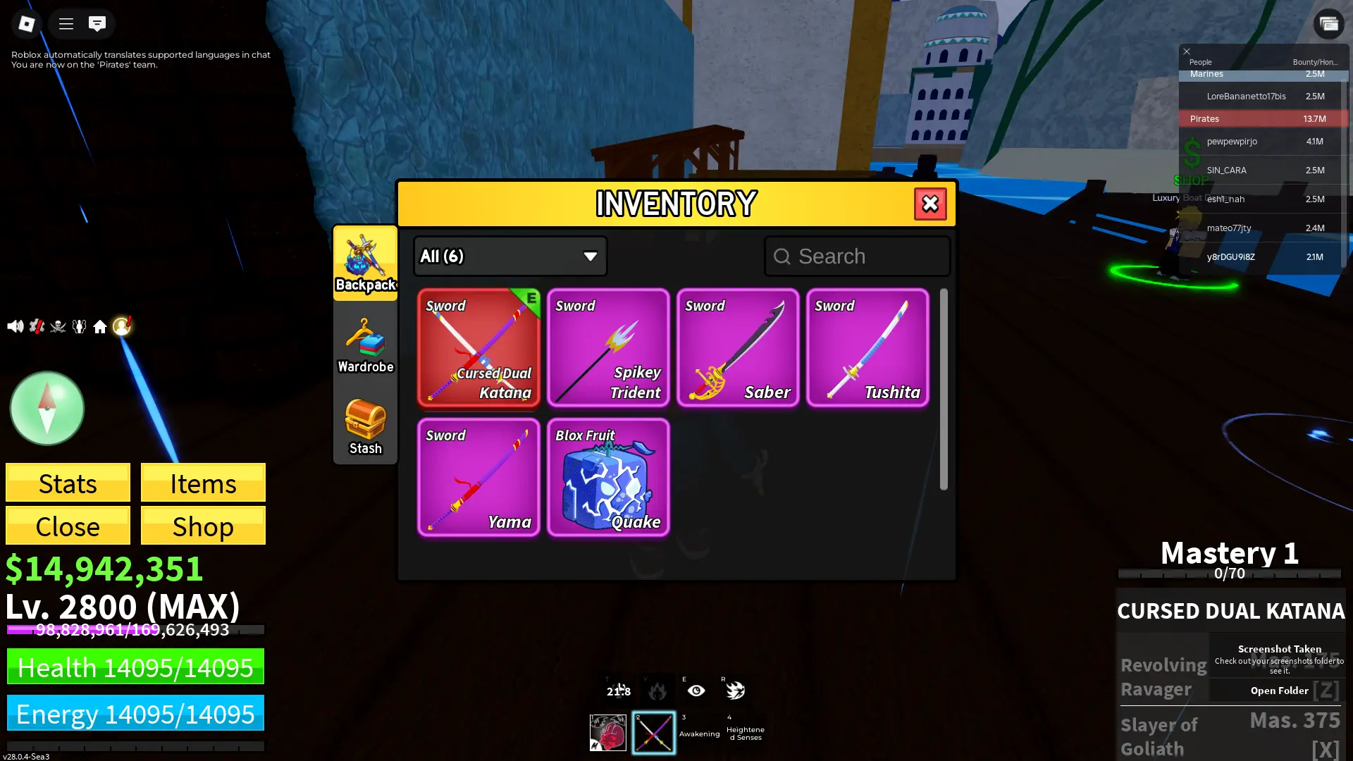 🌀 BLOX FRUITS 2800 Max Level ✅ Ghoul full gear + Sanguine Art | 2.1M Bounty | CDK | fragment 0 | Friut Inventory | Unlinked✅ INSTANT DELIVERY ✅