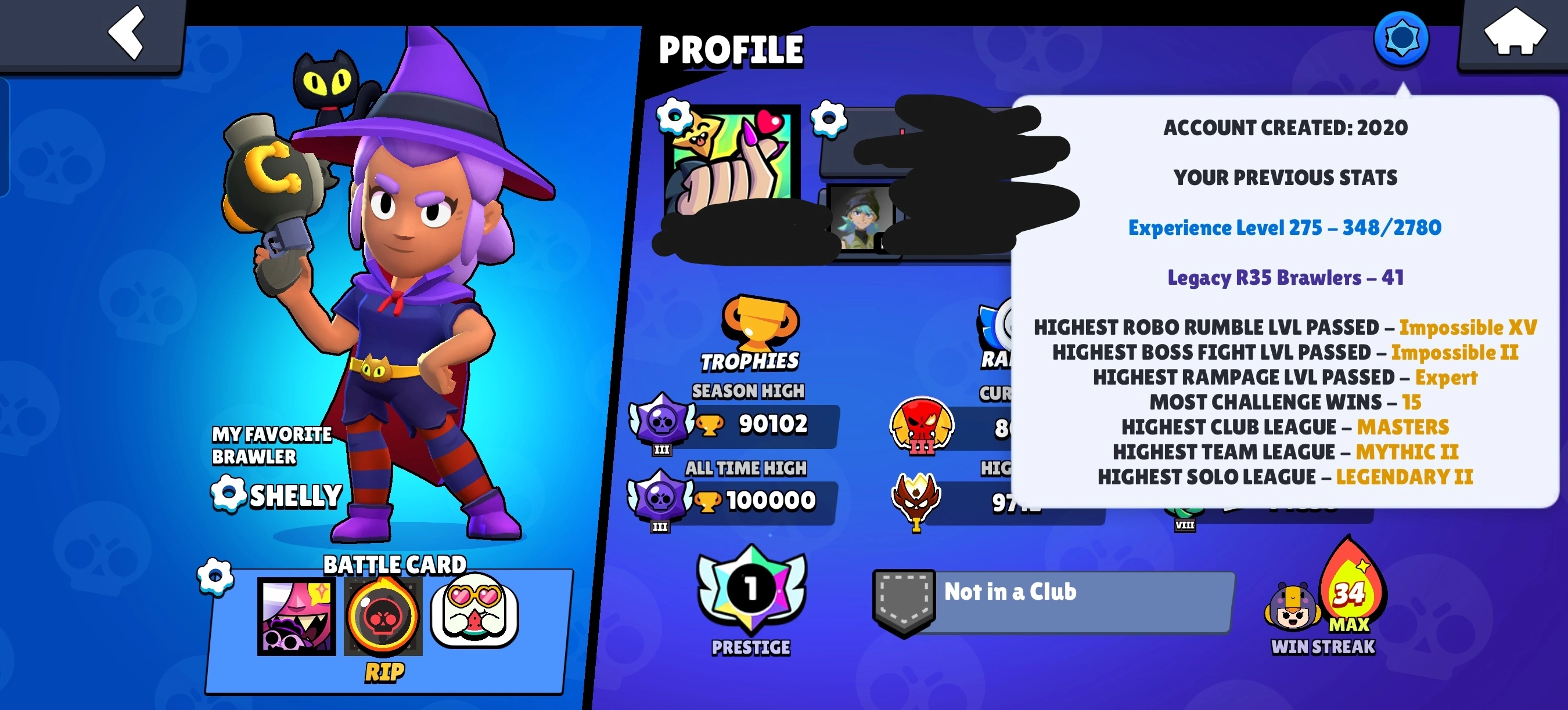 🫧 100k Trophies 🫧 All Times Masters 🫧 41x Legacy r35s 🫧 Legendary 2 Old PL 🫧 Meteoric Fame 2 🫧 1x Prestige 🫧 Many OG Skins 🫧 Fully Maxed 🫧 50k 3v3 Wins 🫧 #rico