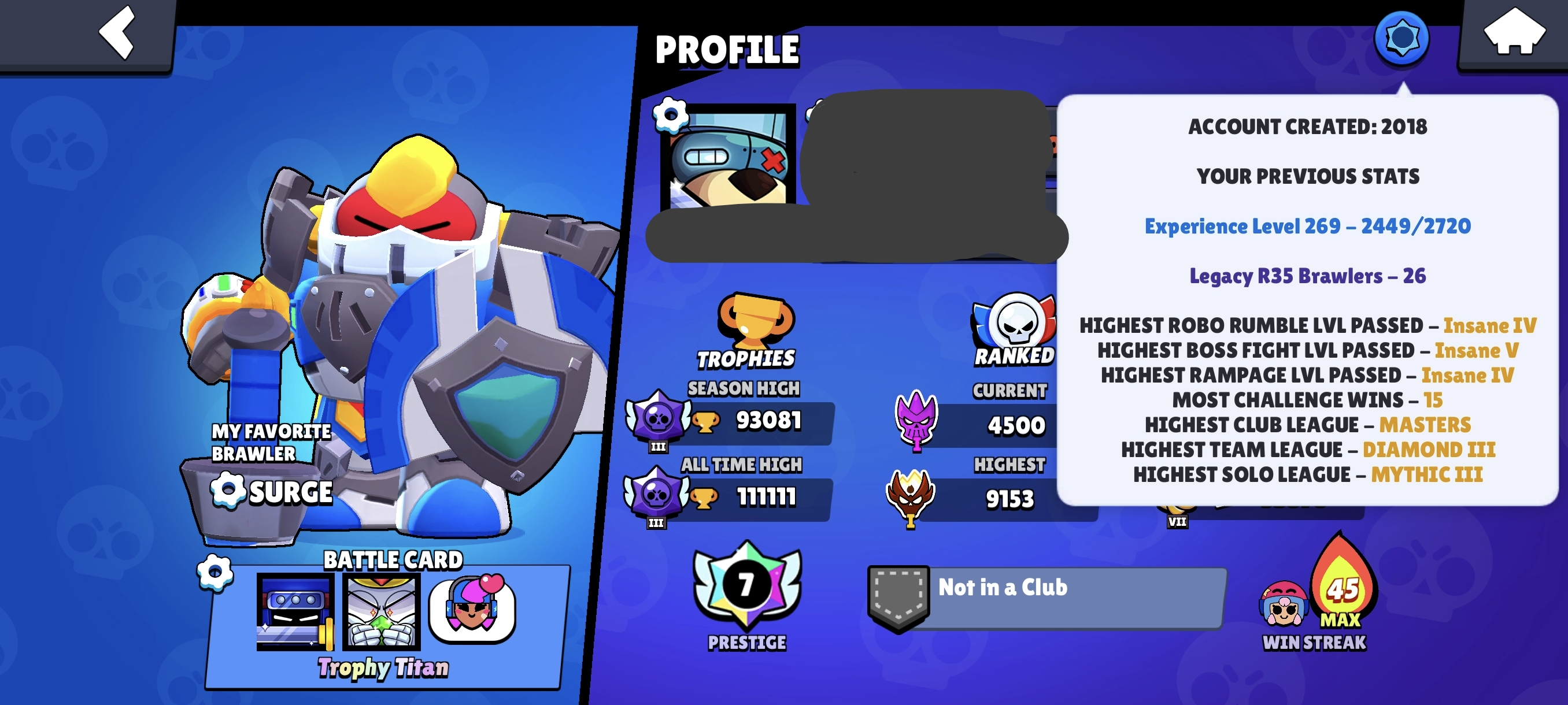💫 111k Trophy 💫 7x Prestige 💫 26x Legacy r35 💫 Trophy Titan 💫 Mythic 3 Power league 💫 3x Old Masters 💫 2x New Masters 💫 300 skins 💫 Supercell id Changeable 💫 86x Maxed 💫 All Max Tiers 💫 Star shelly 💫