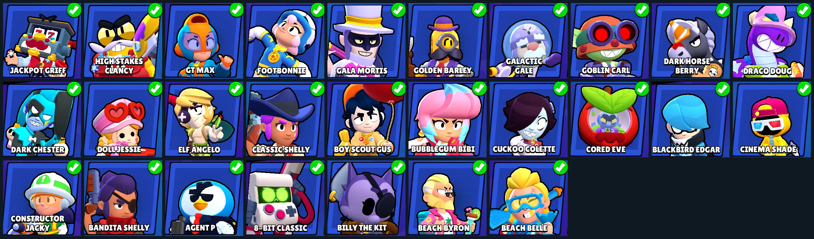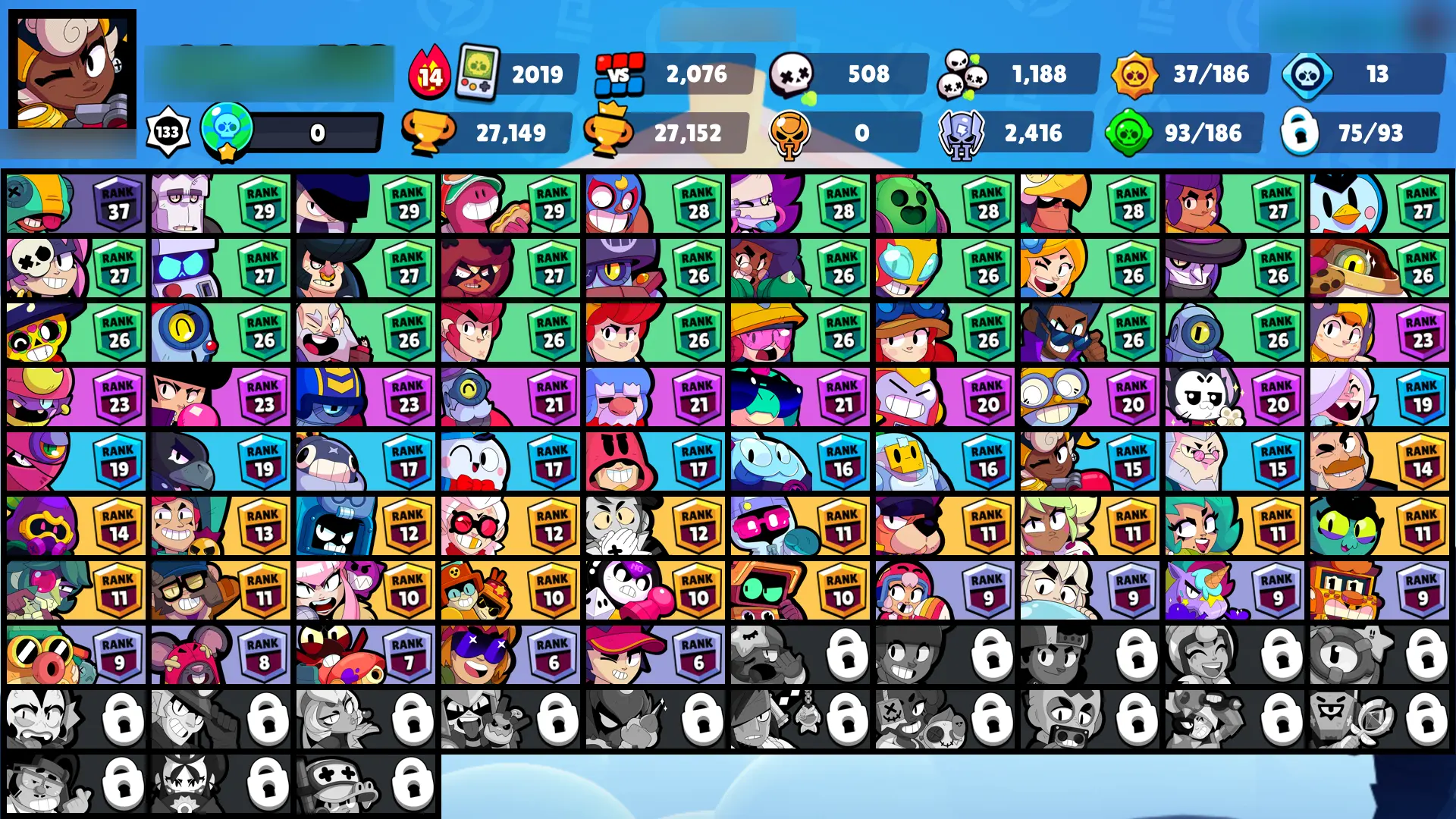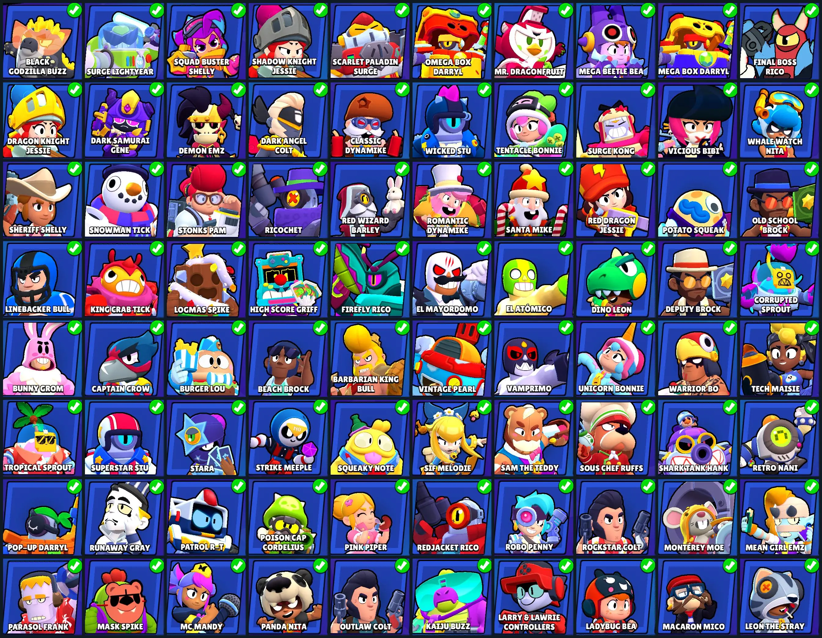 112 SKINS | 27118 TROPHIES | BLACK GODZILLA BUZZ | SURGE LIGHTYEAR | DARK SAMURAI GENE | SANTA MIKE | WARRIOR BO | GALACTIC GALE | BEACH BELLE | TECH MAISIE | DARK HORSE BERRY | SCARLET PALADIN SURGE | POISON CAP CORDELIUS | 75 BRAWLERS